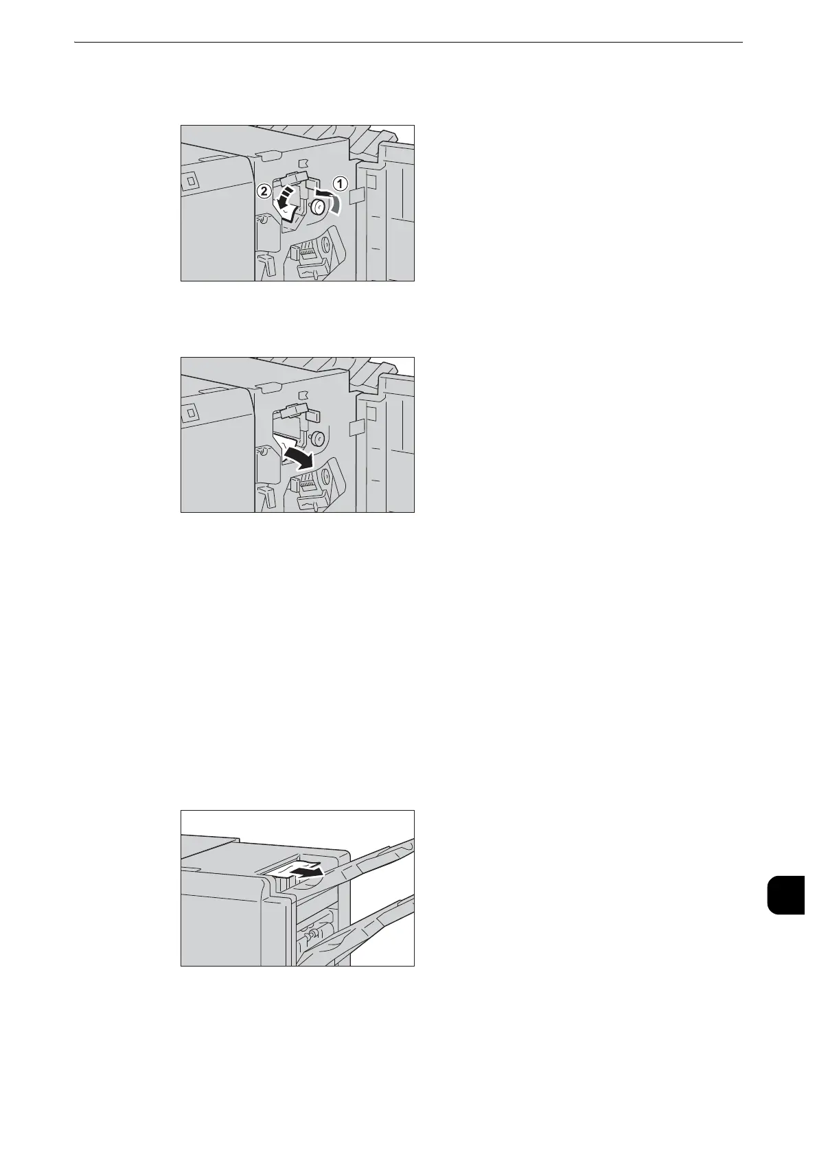 Turn the knob [3b] to the left (1), and eject the jammed paper (2).