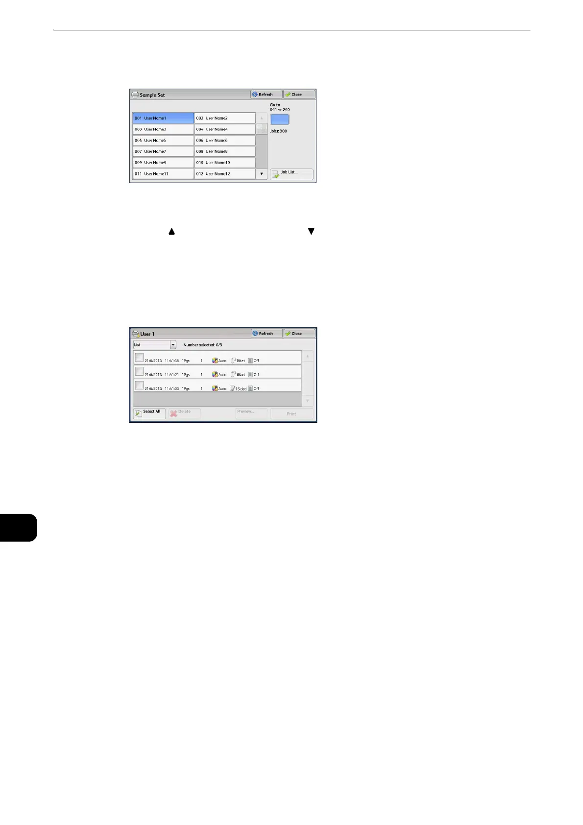 You can select up to 100 files simultaneously to print or delete the files. If you select multiple files, they are