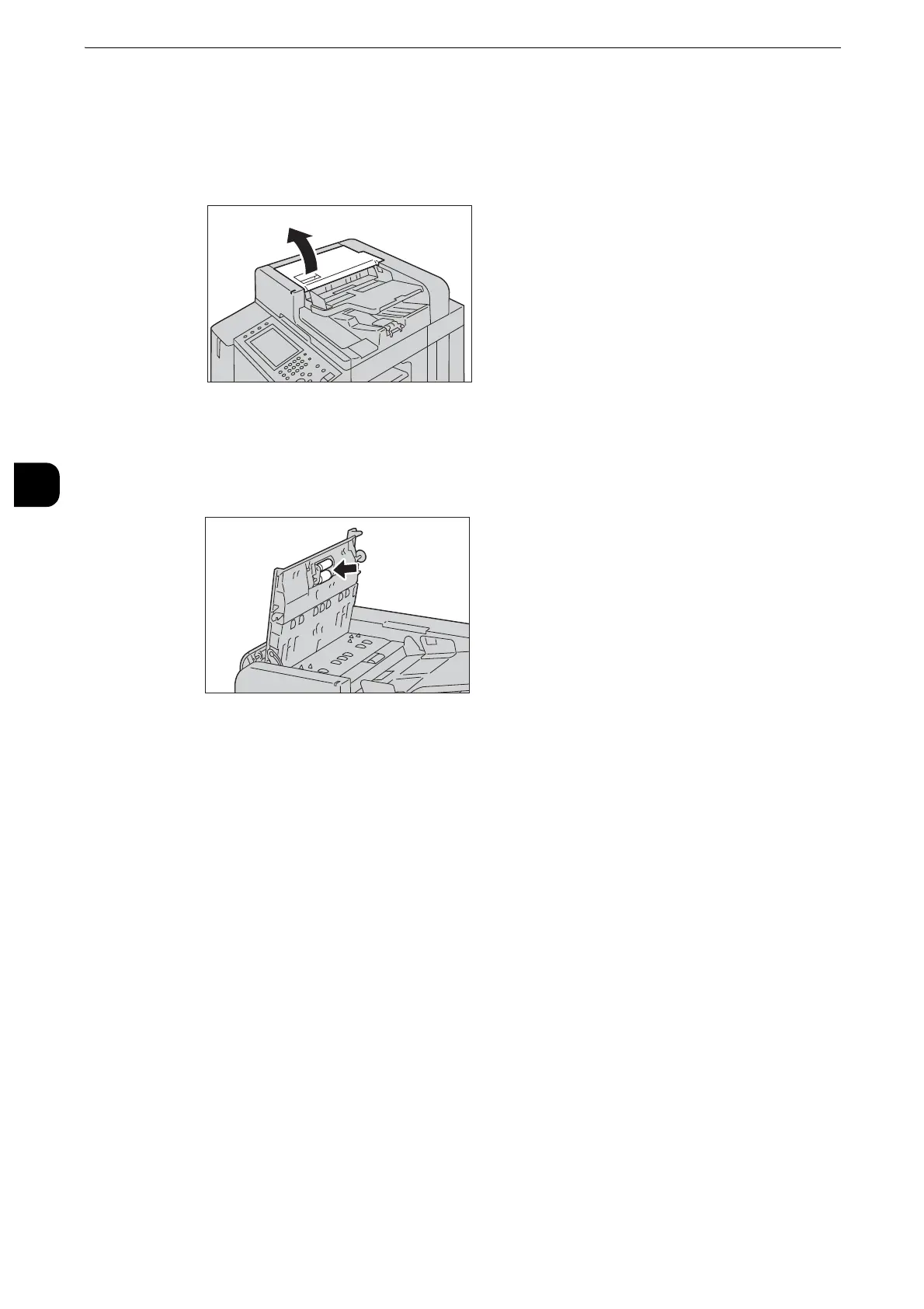 Pull up the handle of the top cover of the document feeder, and then open the top cover
