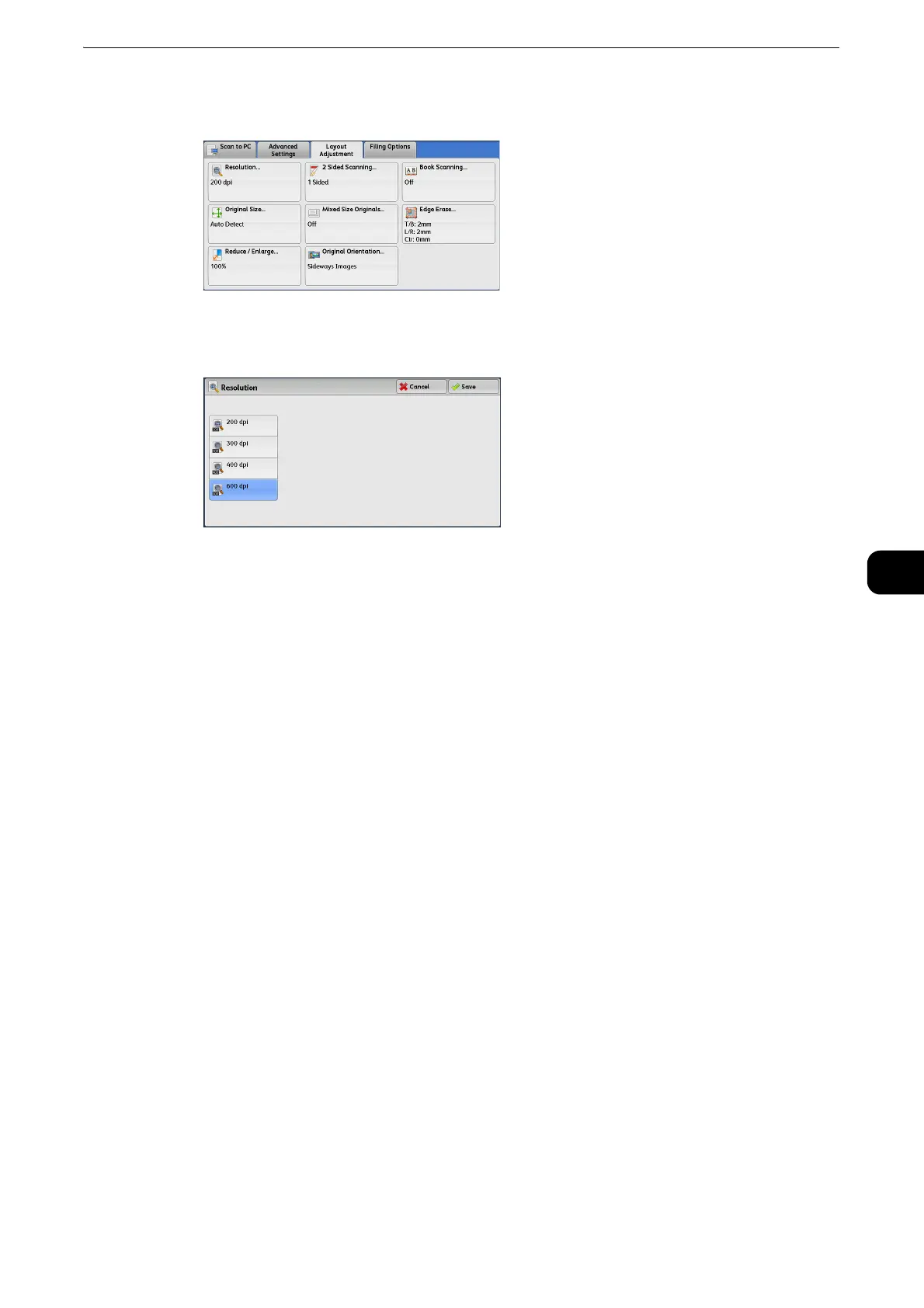 Select either [200 dpi] or [300 dpi] when [MRC High Compression] is set to [On] for PDF, DocuWorks, or XPS*