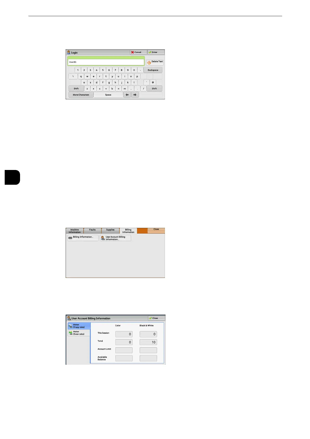 The meters are displayed only for the features set to [Enable Accounting] in the Auditron mode.