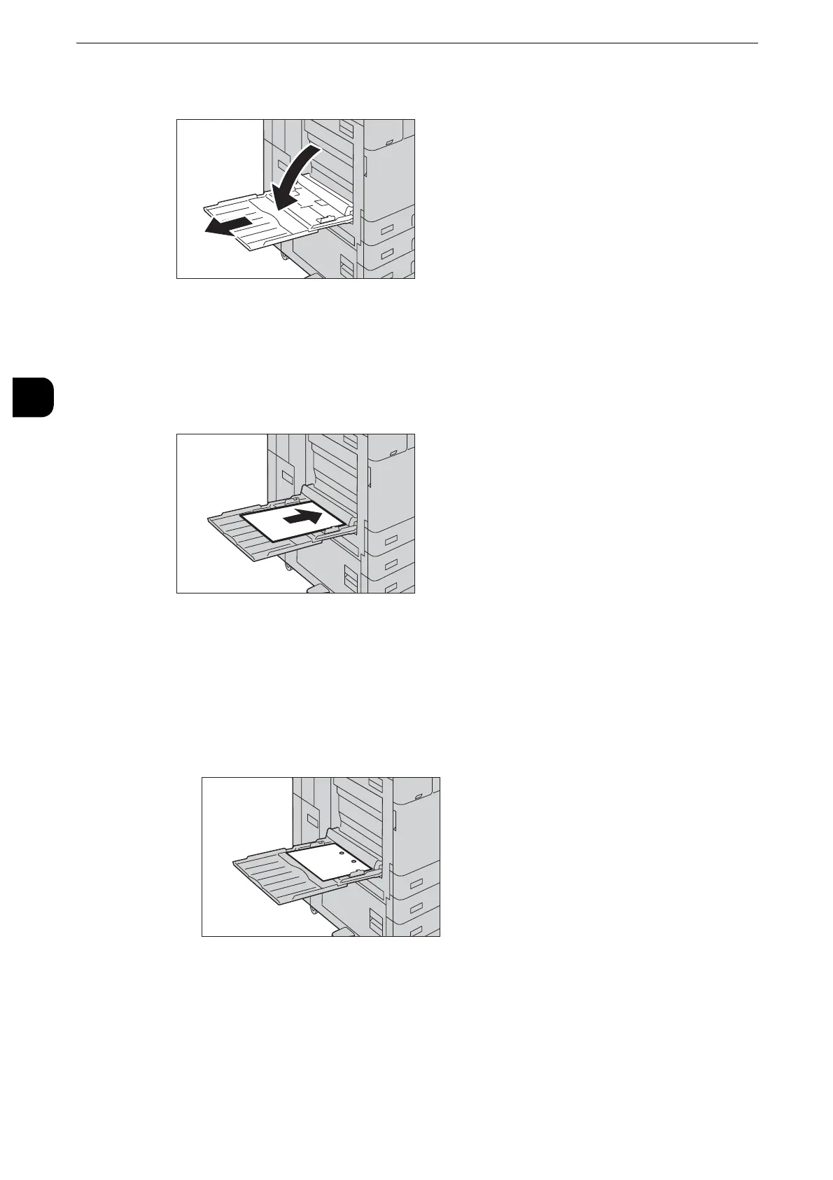If necessary, pull out the extension tray. The extension tray can be extended in two stages. Pull out the