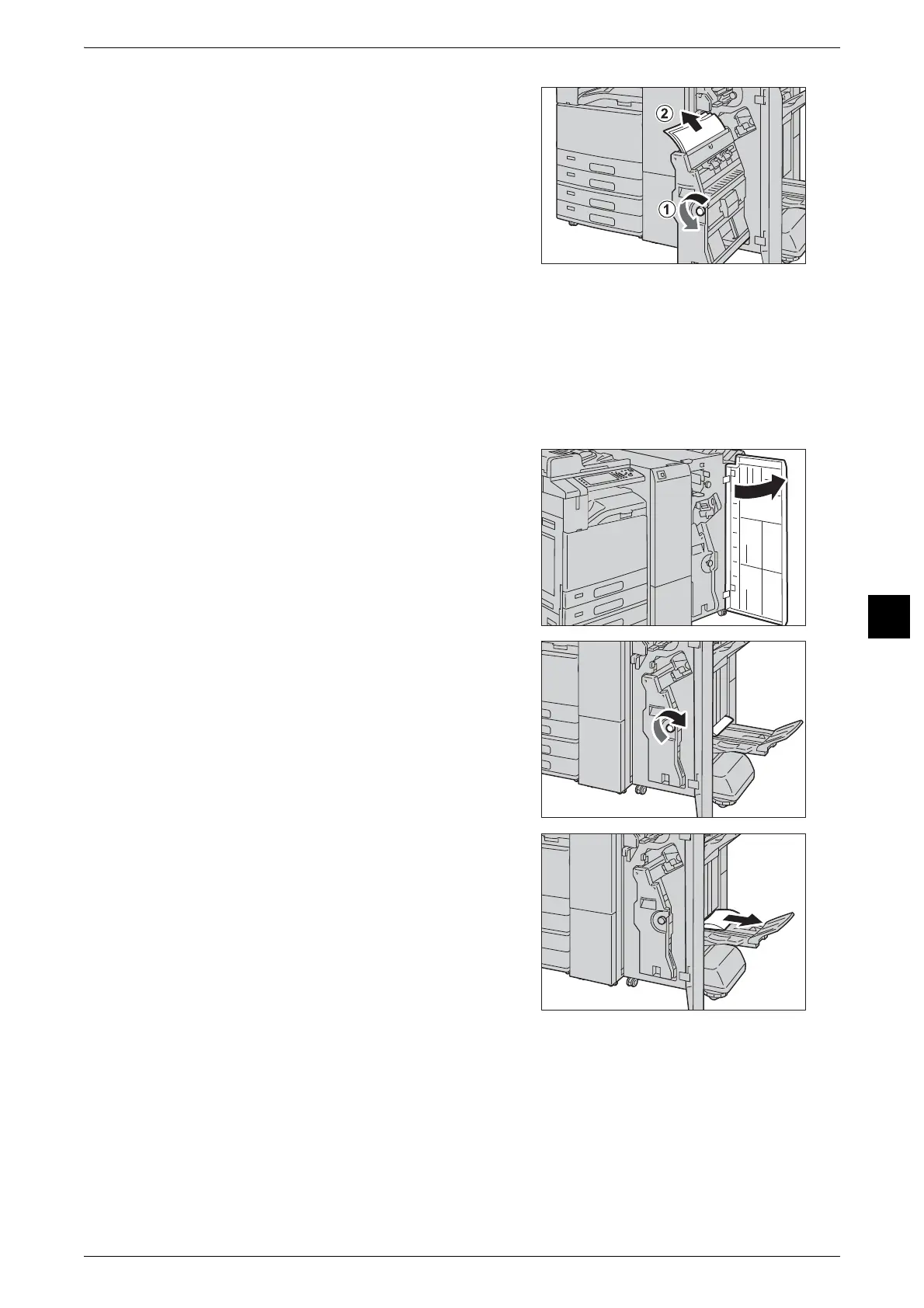 Note • If the finisher front door is not completely closed, a message will appear and the machine remains