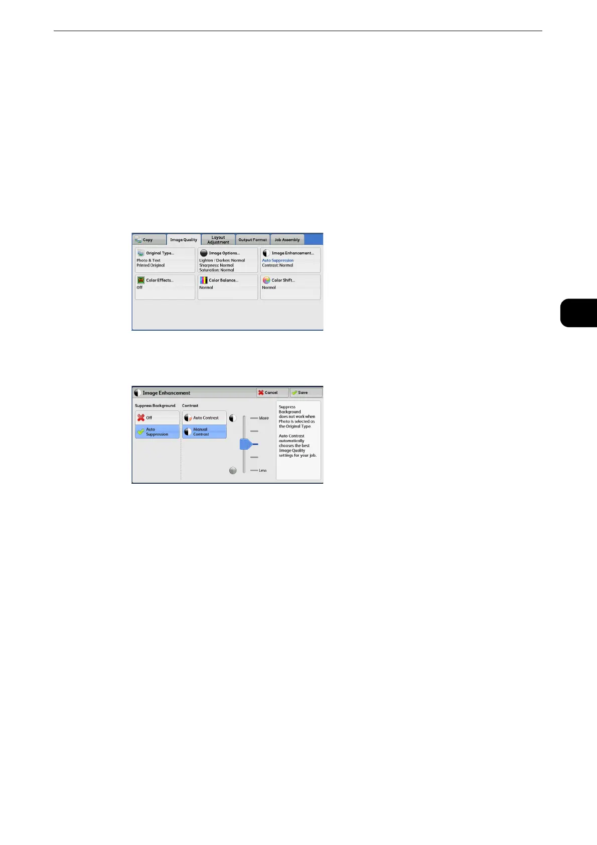 information, refer to "Tools" > "Copy Service Settings" > "Copy Control" > "Background Suppression (Photo &