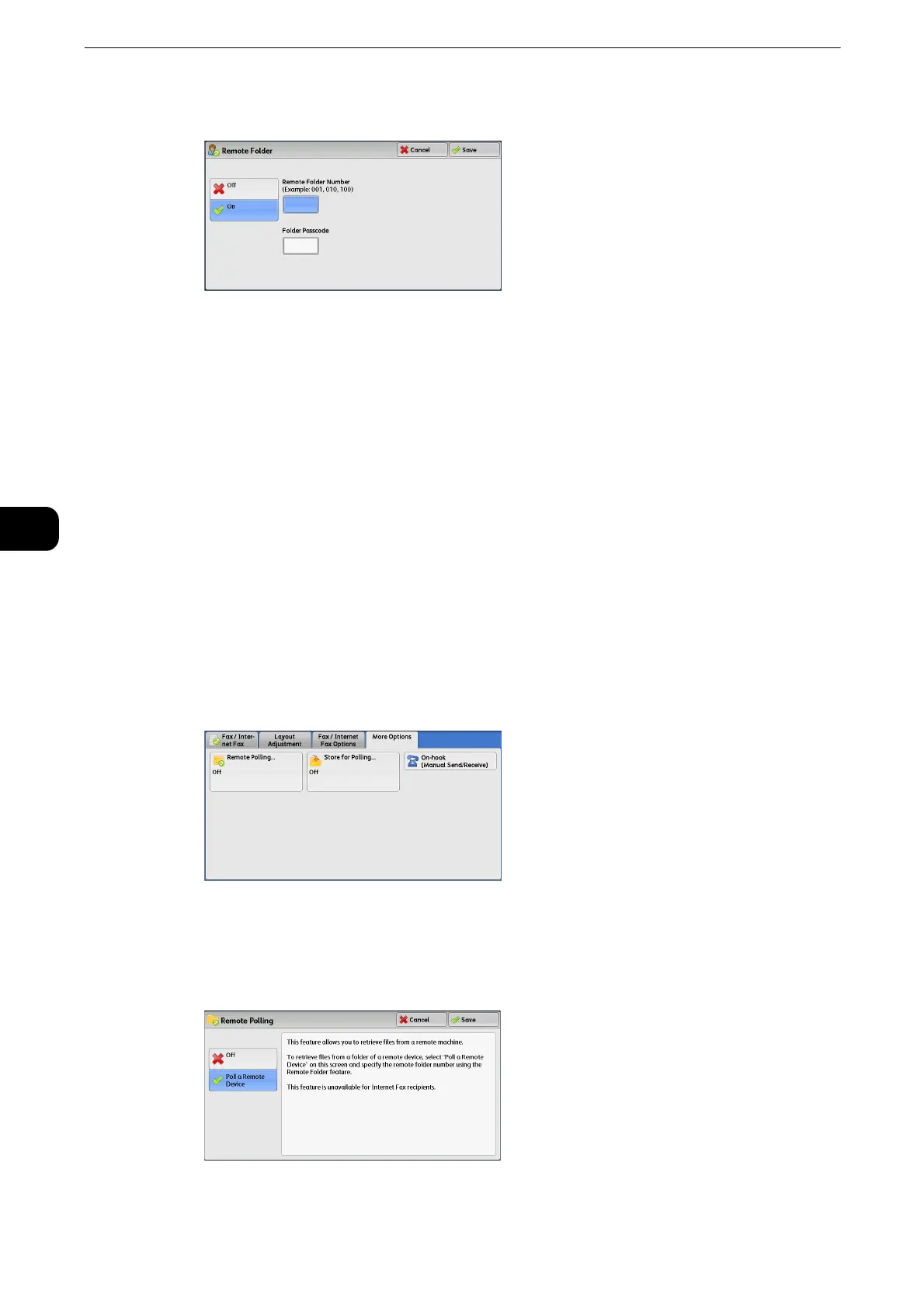 Enables the Remote Folder feature. Enter a folder number in [Remote Folder Number].
