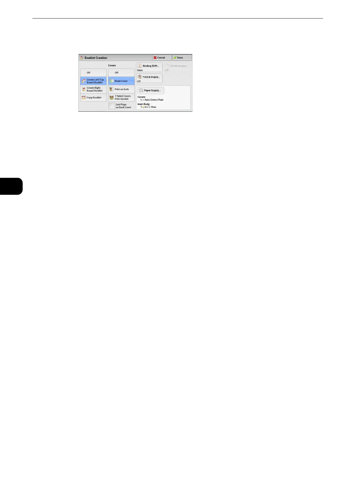 copy sheets as a back cover. When you use [Divide Output] to divide a booklet into subsets,