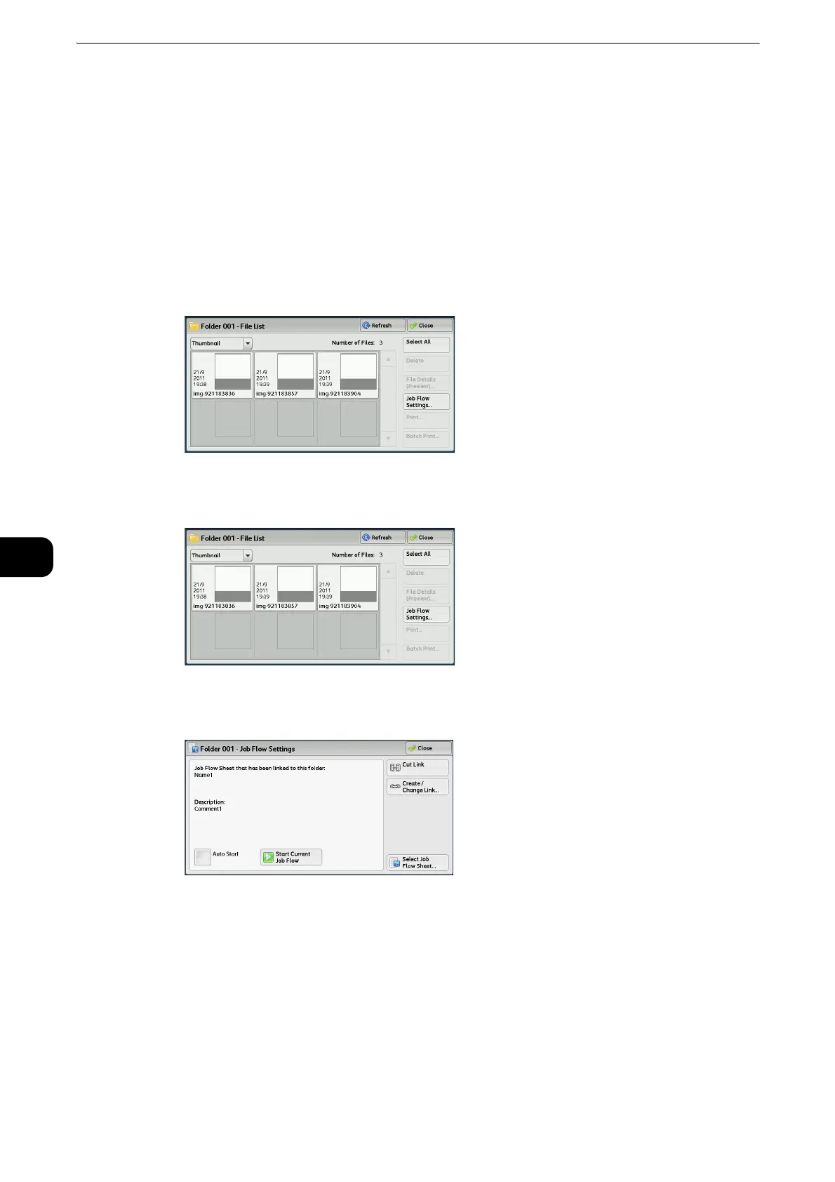 After executing the job flow, confirm the [Job Status] screen or print a Job History Report to check the result.