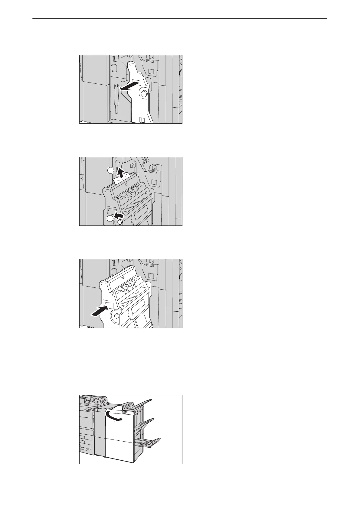 1 Make sure that the device has stopped, and open the finisher front door.