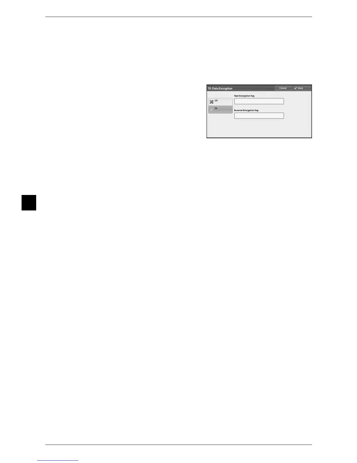 When you enable data encryption, the machine encrypts automatically copy data written to