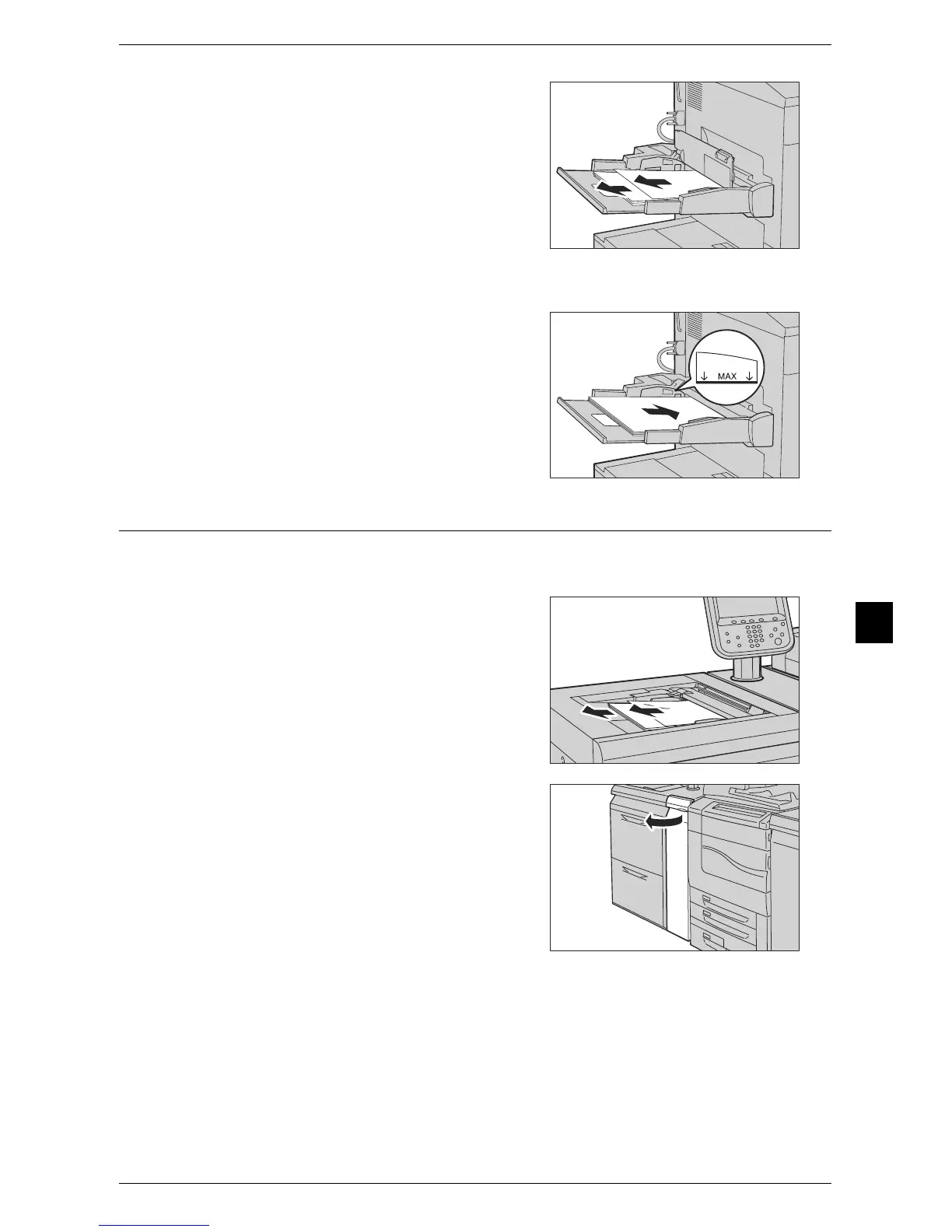 The following describes clearing paper jams occurring in Tray 5 (bypass) when the
