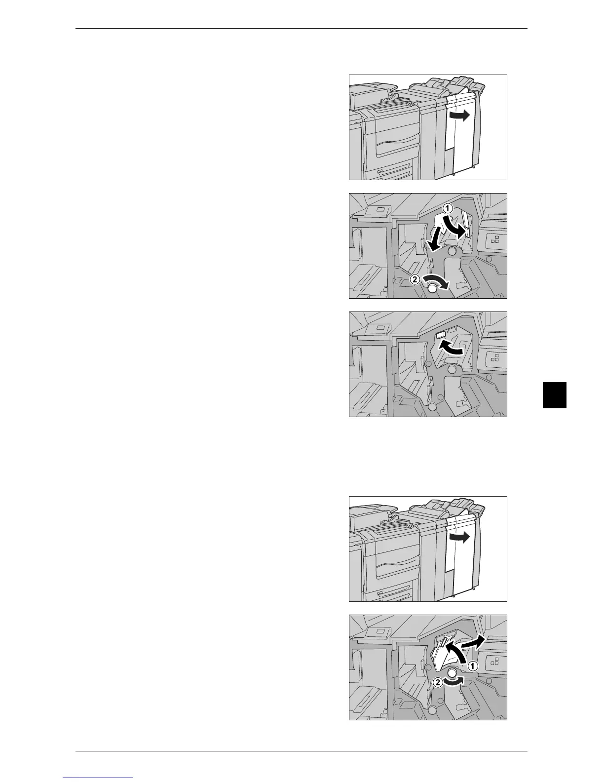 Note • A message will be displayed and the machine will not operate if the right cover of the finisher