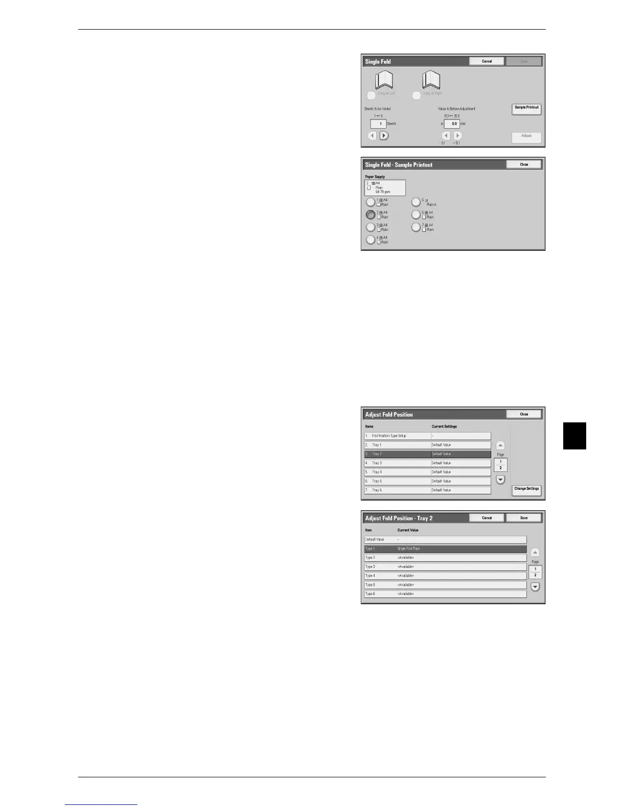 20 Press [Close] until the [Adjust Fold Position] screen appears.
