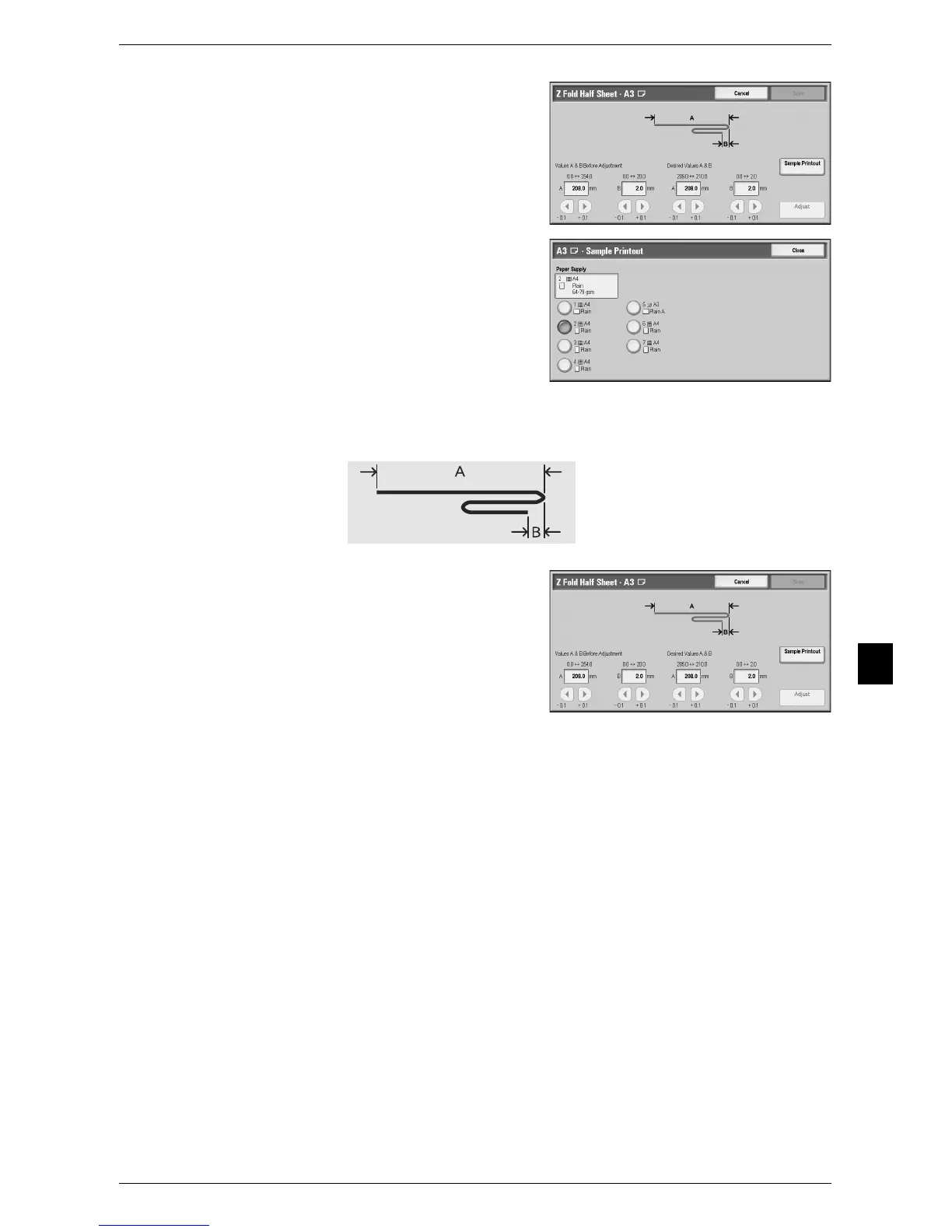 5 Check the printed sample printout, and measure the A and B fold position movement