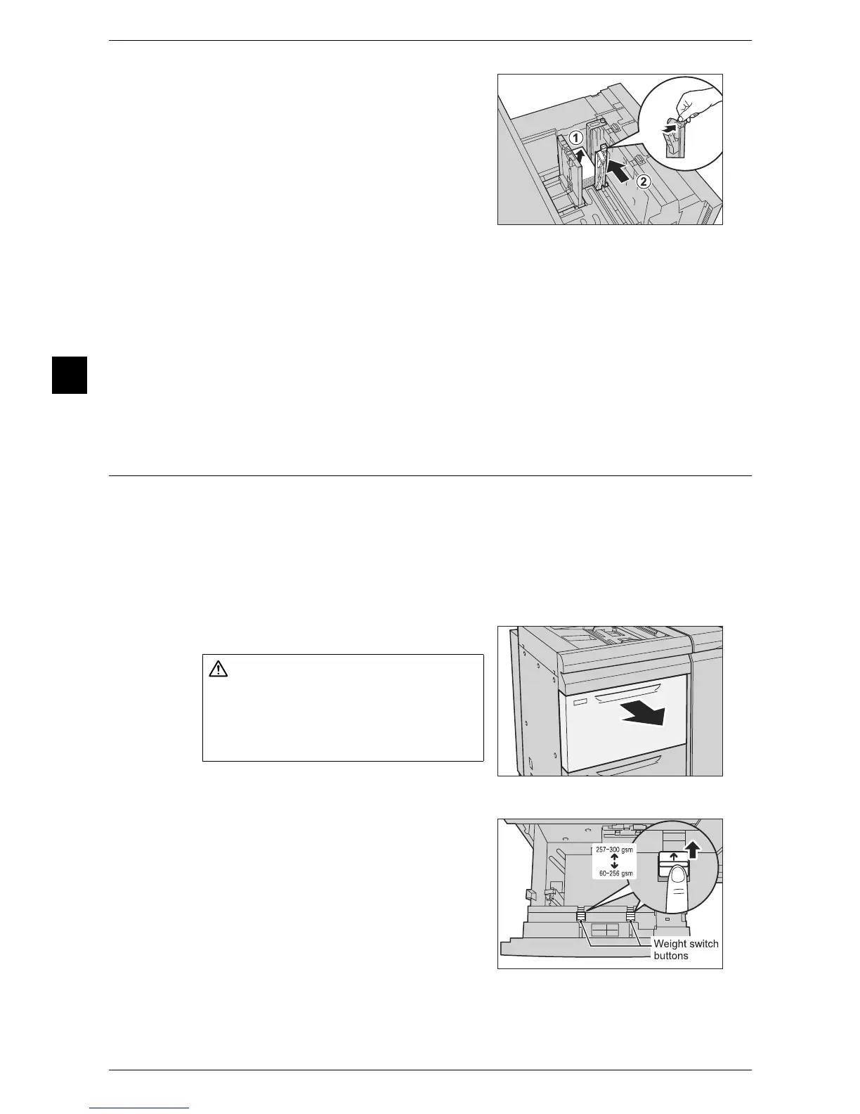 Important • If 256 gsm or heavier paper is loaded in the tray, be sure to switch the button to the heavier