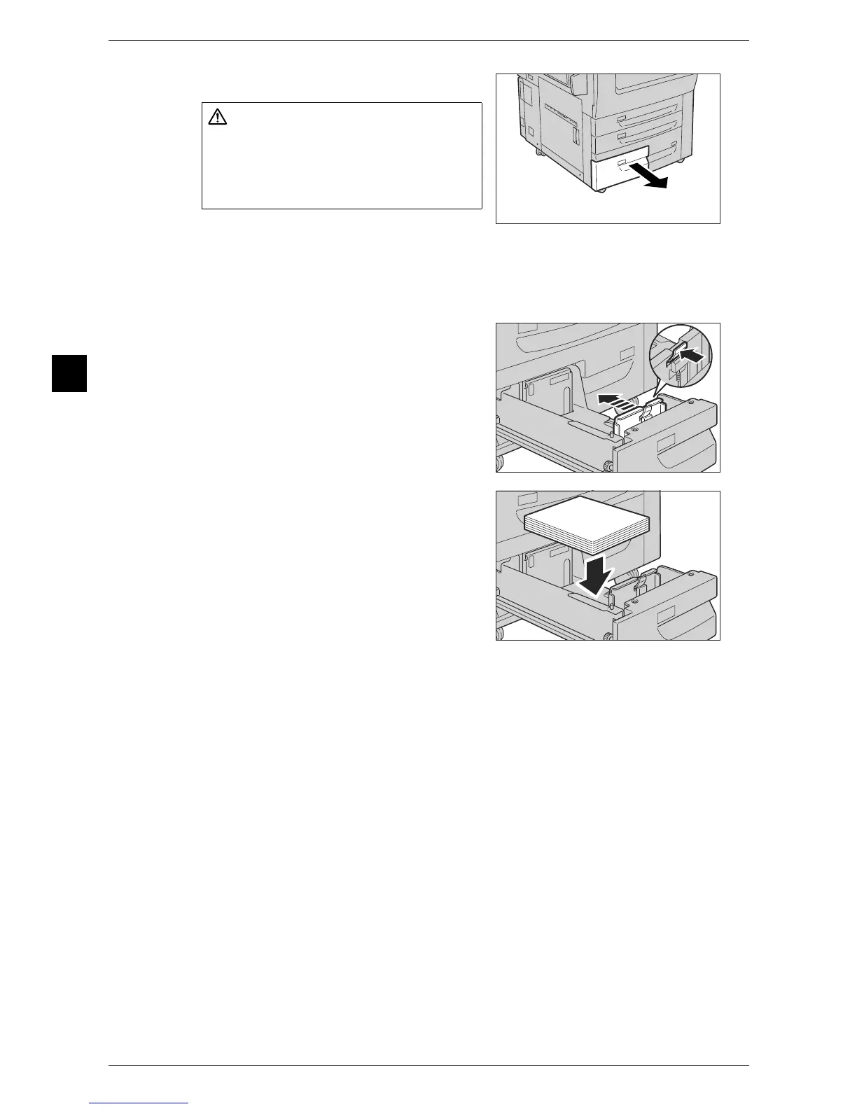 • To prevent paper jams or erroneous detection of loaded paper in a tray by the machine, do