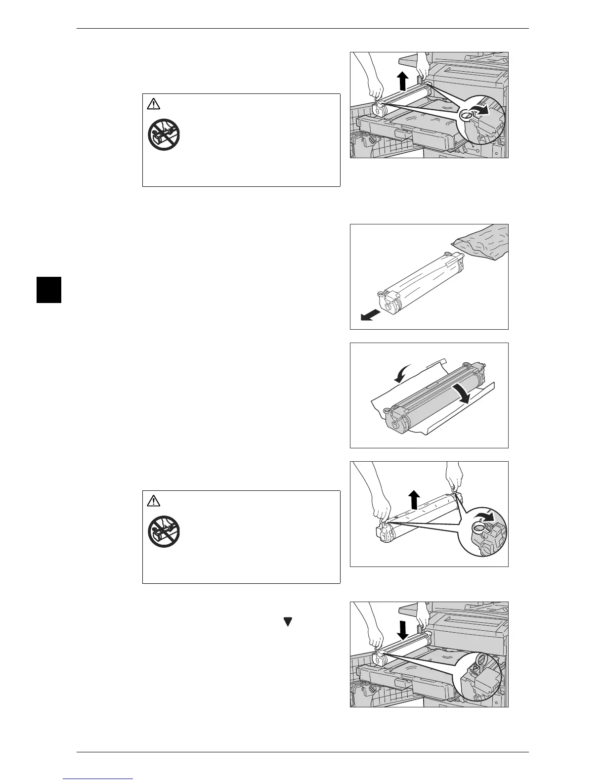 7 Insert the used drum cartridge into the box which contained the new drum cartridge.