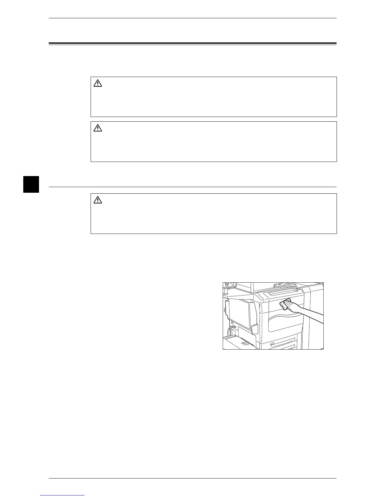 inside the body front cover, and unplug the product. Access to a live machine interior