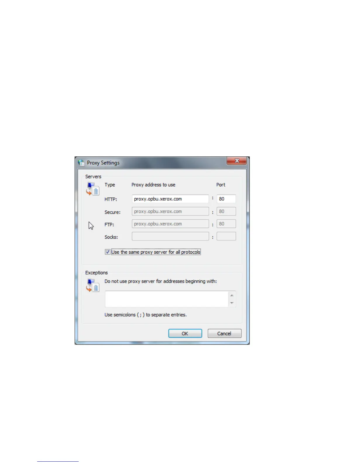 proxy server used by your computer are show in this window.