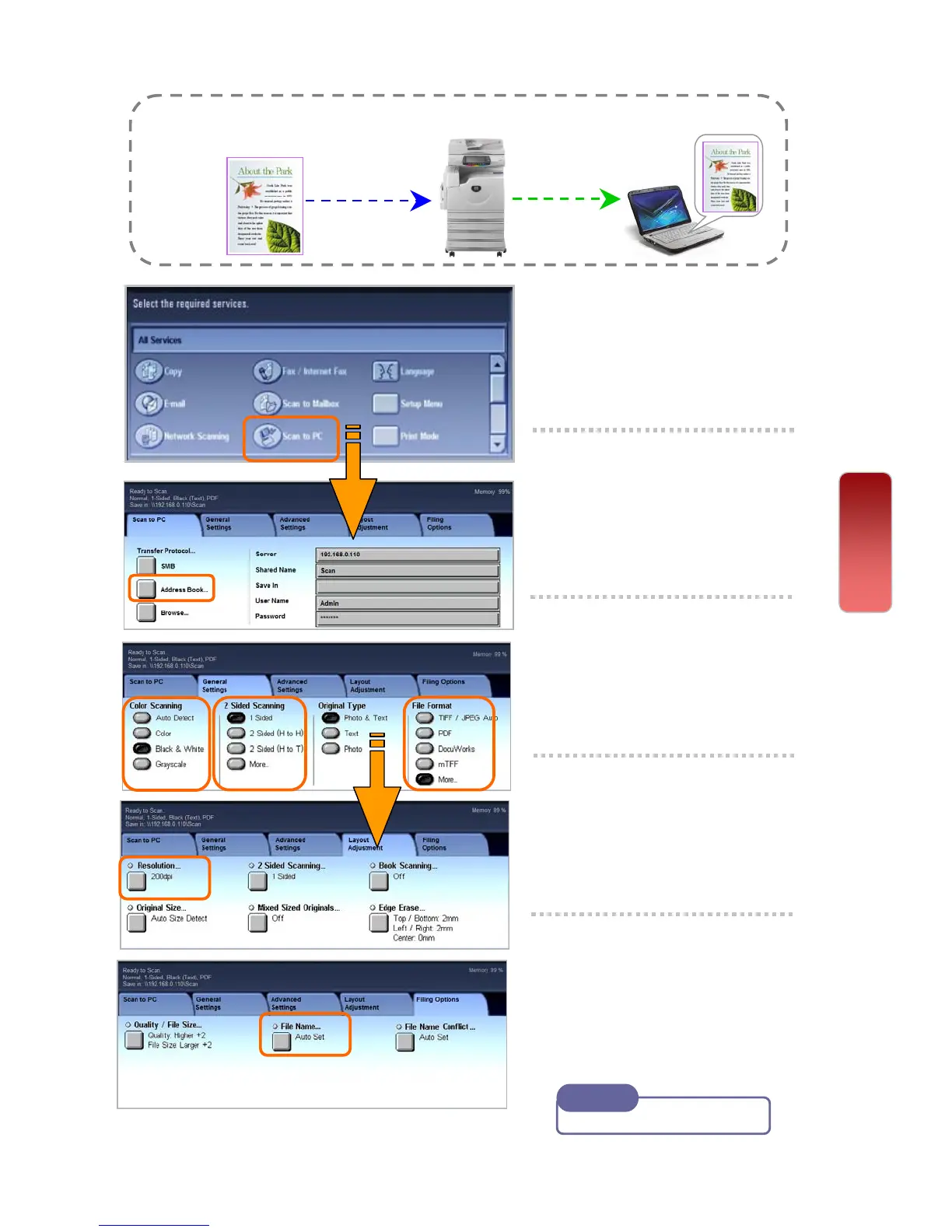 To Scan document and transfer to PC (SMB)