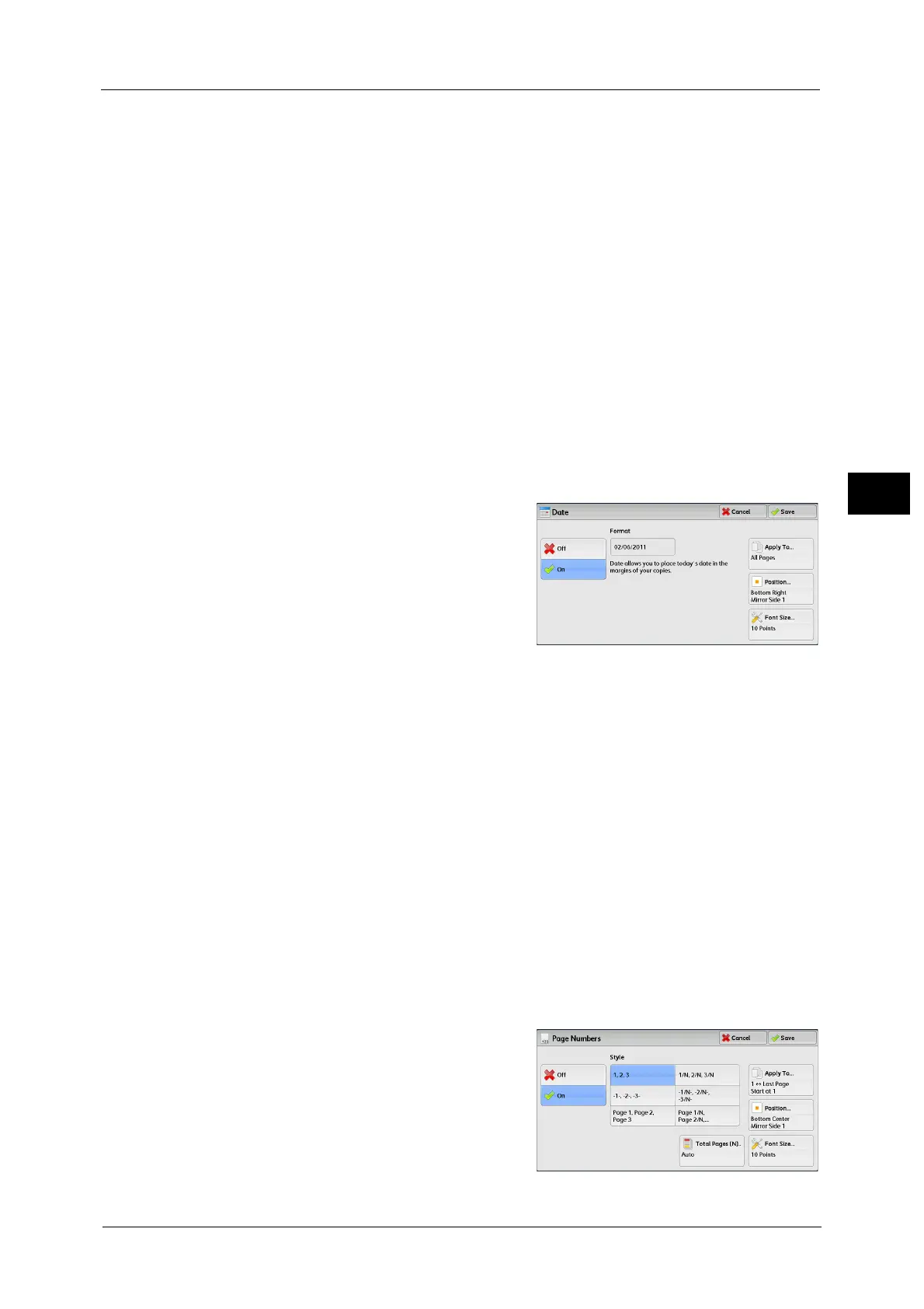 This screen allows you to add a date onto copies. The date shows when you started copying