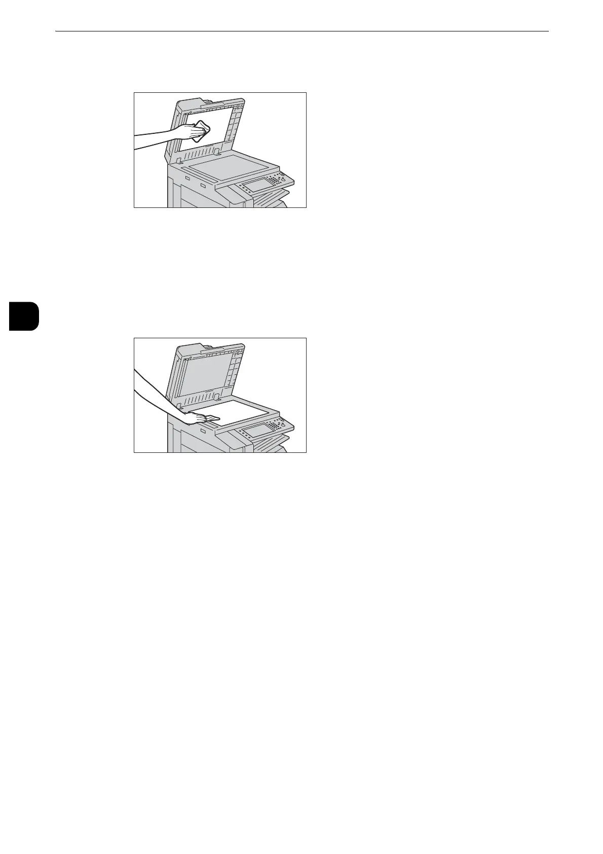 If you cannot remove dirt easily, gently wipe the document glass with a soft cloth moistened with a small