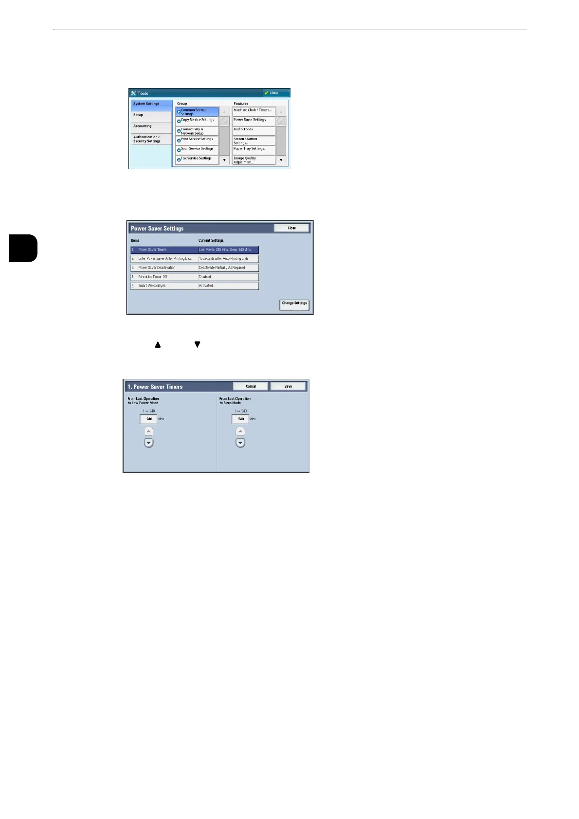 Select [System Settings] > [Common Service Settings] > [Power Saver Settings].