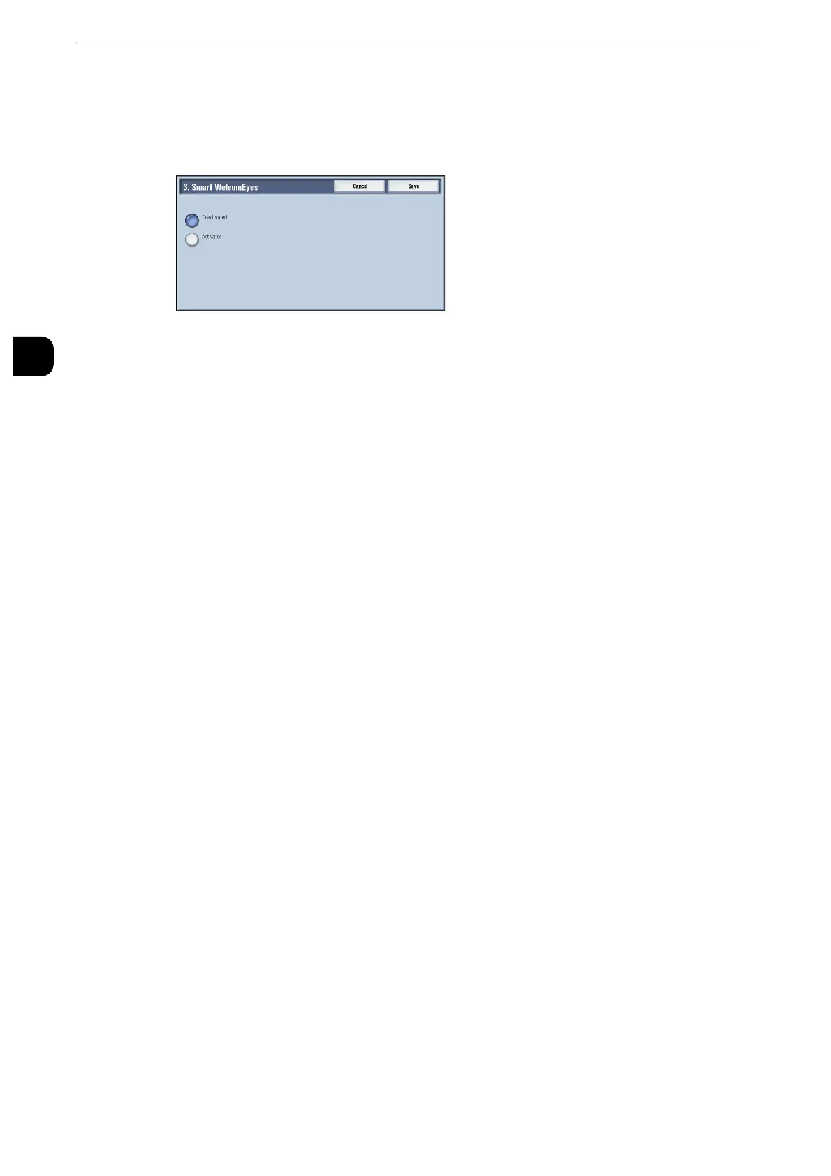 To deactivate Smart WelcomEyes, select [Deactivated]. To save power by using Smart WelcomEyes, select