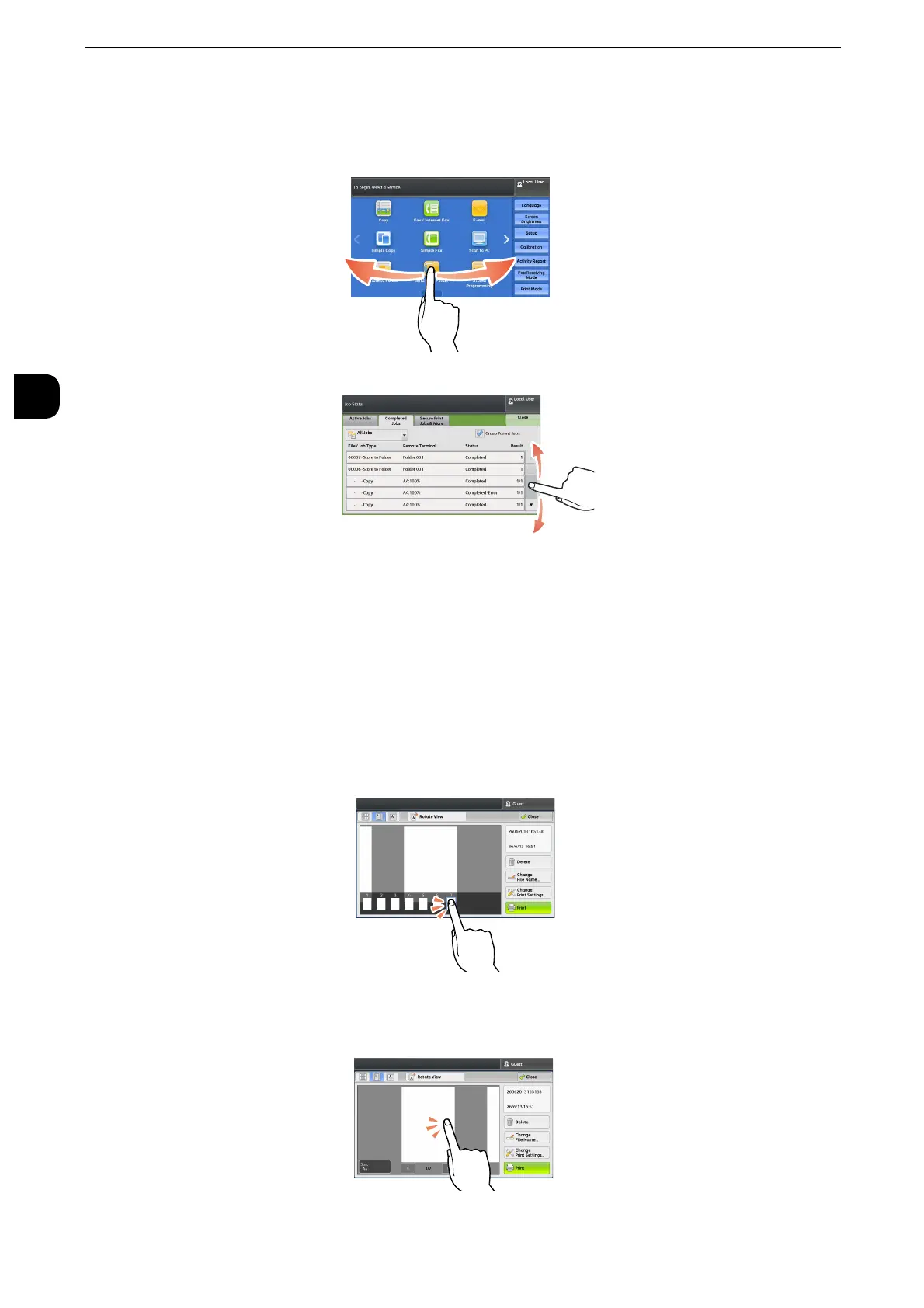 Flick the touch screen from side to side or up and down to switch pages.