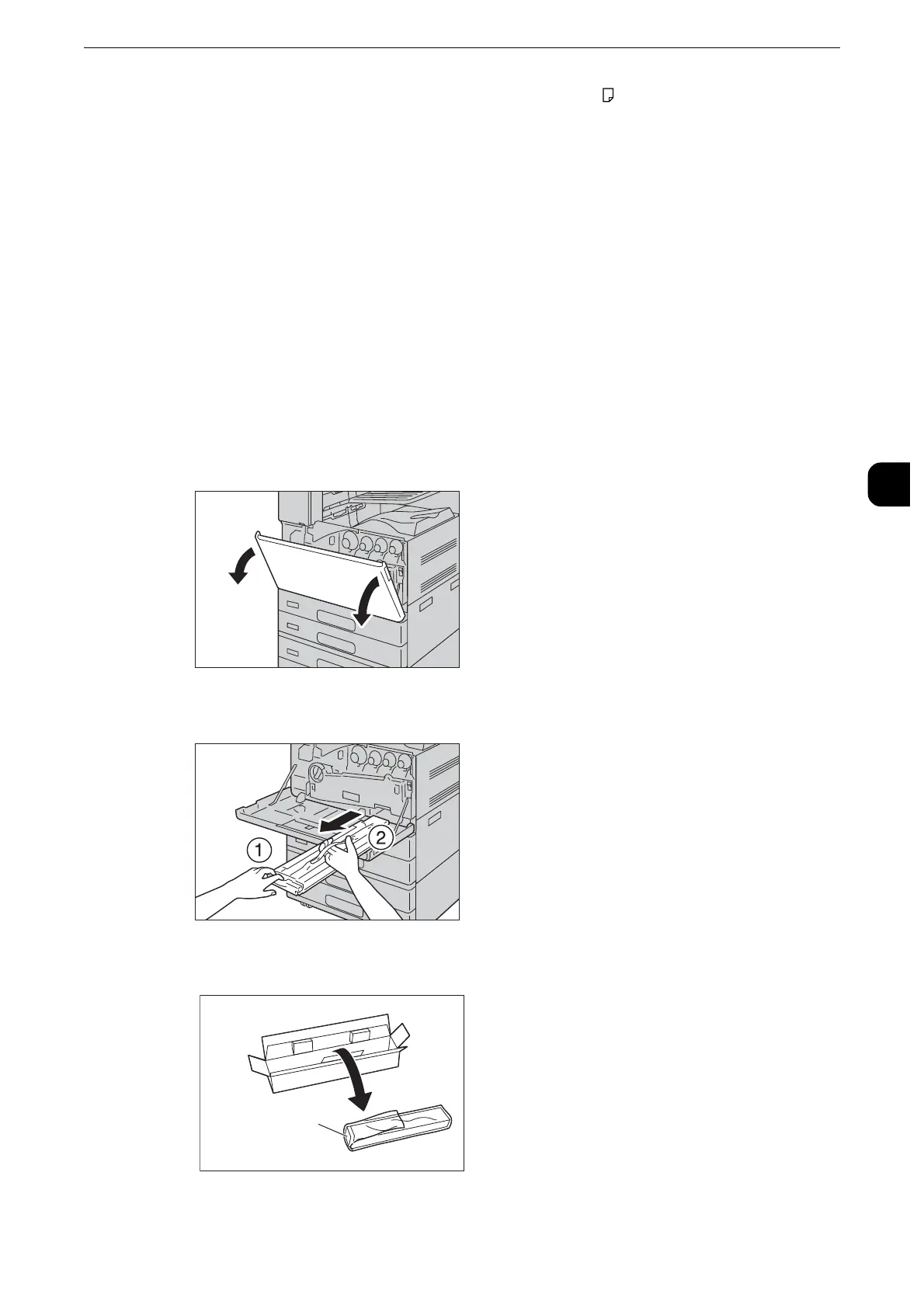 When you replace the waste toner container, toner may spill and soil the floor. We recommend laying paper