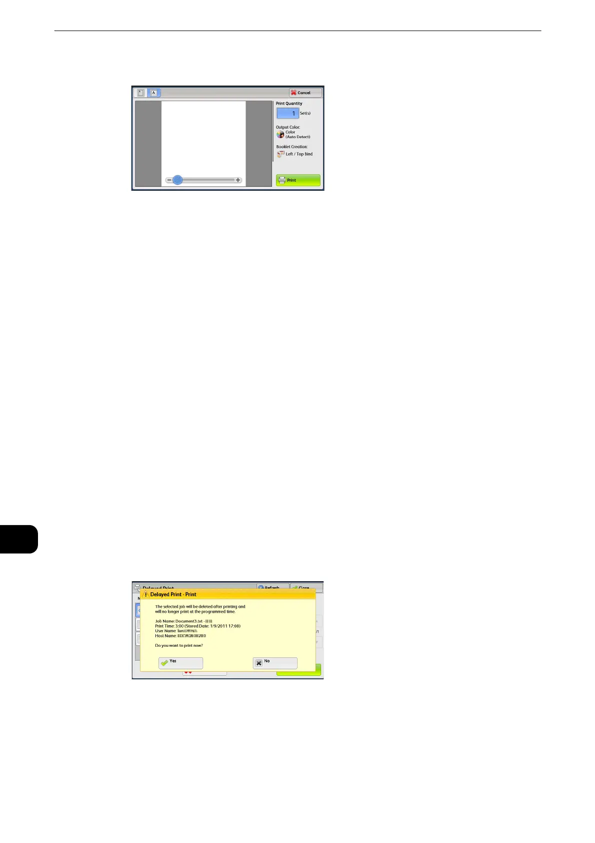 The screen shown here does not appear if [Print Job Confirmation Screen] is set to [Disabled] in the System