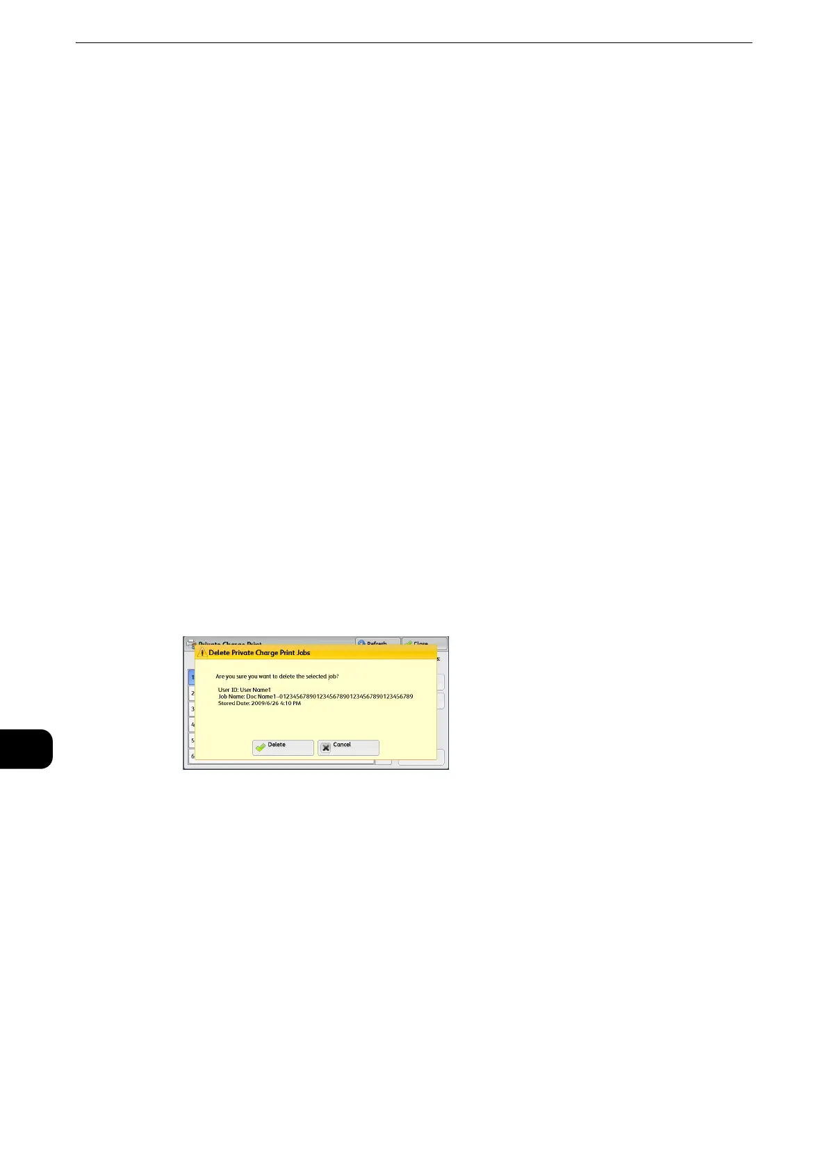 Prints the Private Charge Print job. After printing, the job is deleted.