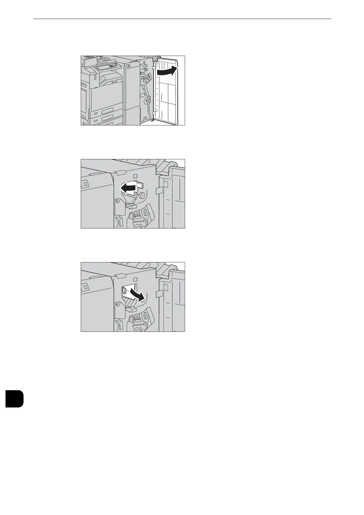 If the finisher front door is not completely closed, a message will appear and the machine remains paused.