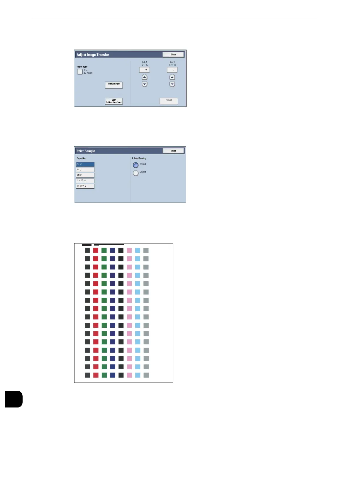 When the paper size is A4, B4, or 8.5 x 11", the sample will be printed on two sheets.