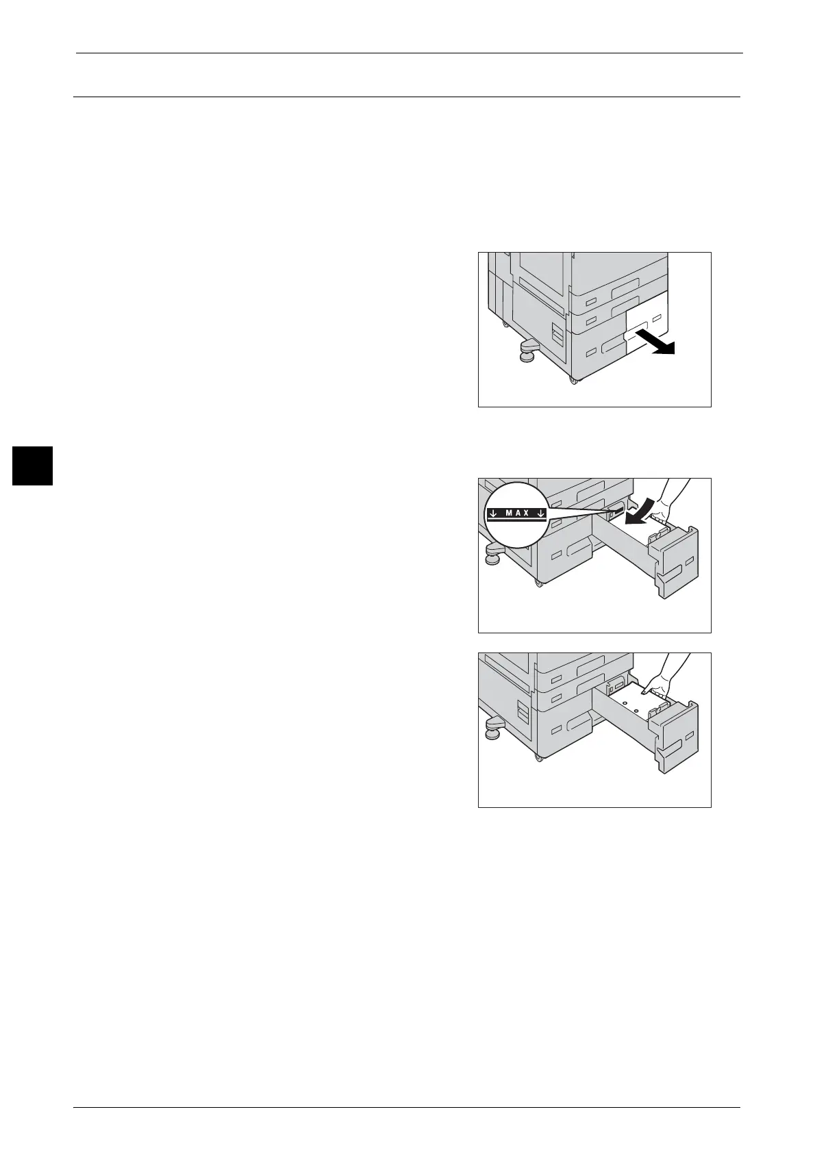 The following describes the procedure for loading paper in Tray 4 when the Tandem Tray