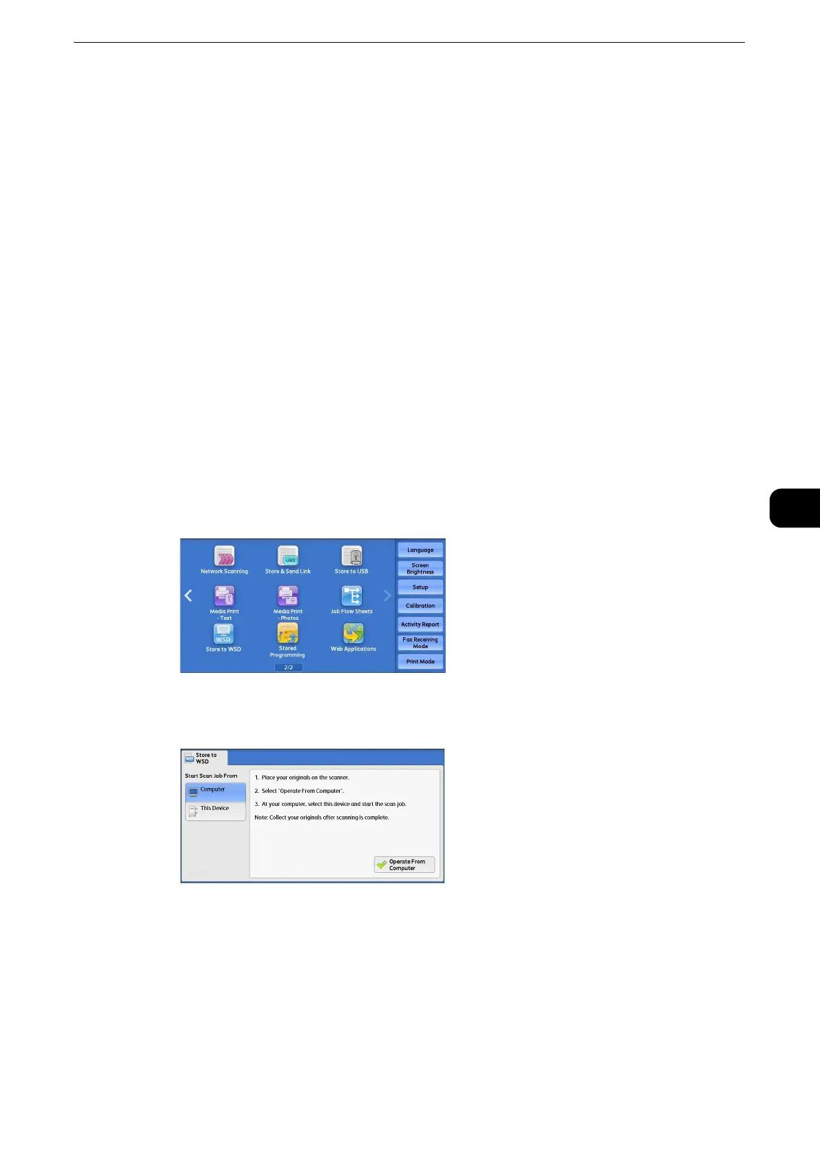 [Store to WSD] may not appear on the Services Home screen for some models. For more information, refer to