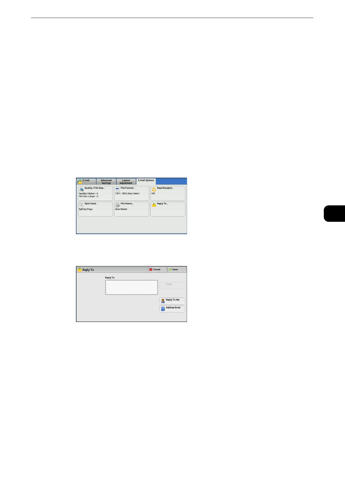 [Reply To Me] is selectable only when an address is specified in [From] on the [E-mail] screen.