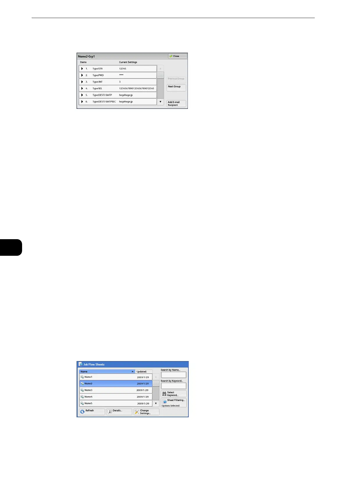 Job flow sheets displayed vary depending on the settings of the Authentication feature. For more information, refer to