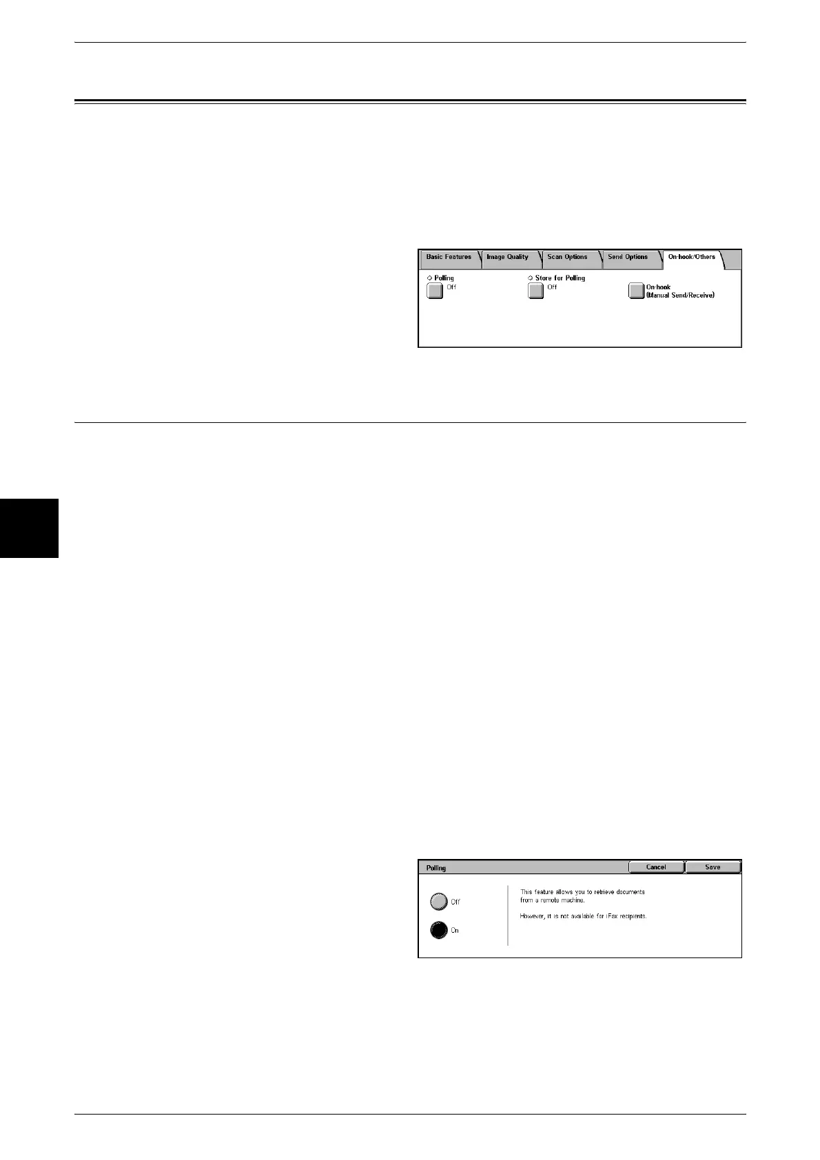 This section describes setting polling and on-hook.