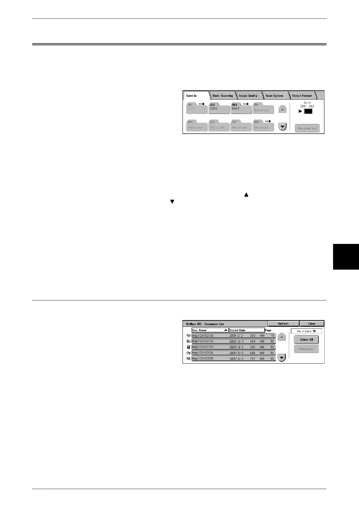 Select a mailbox and press this button to check or delete documents stored within.
