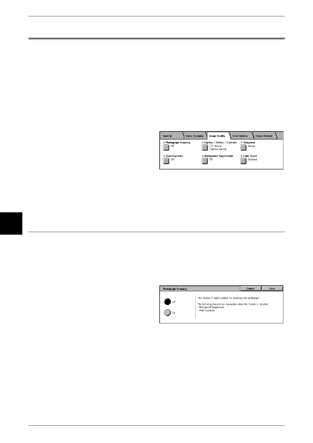 • When [Photograph Scanning] is selected, [Background Suppression] and [Auto Exposure]