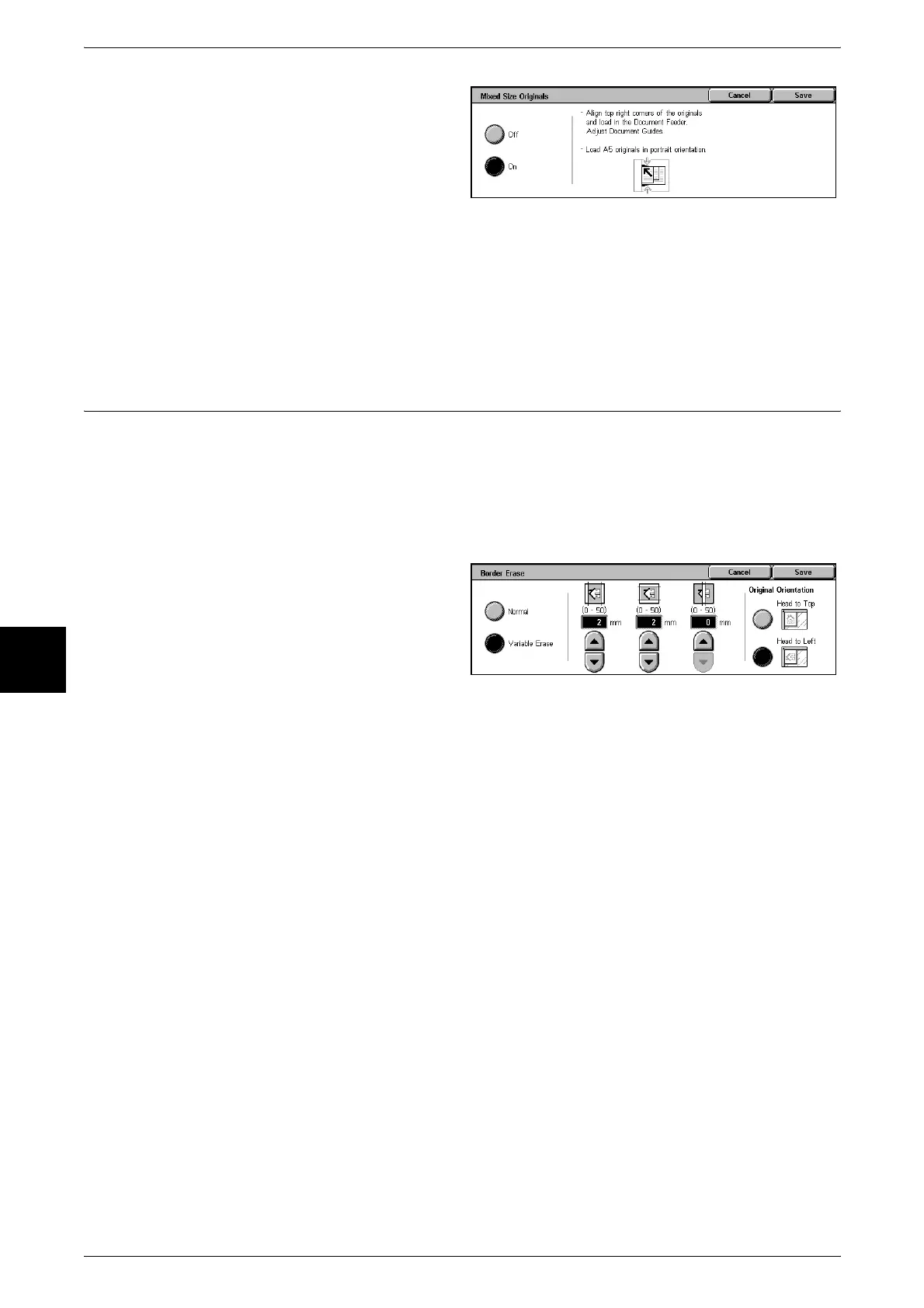 Note • When making 2 sided scans, the same border erase amount is set to the top and back sides.