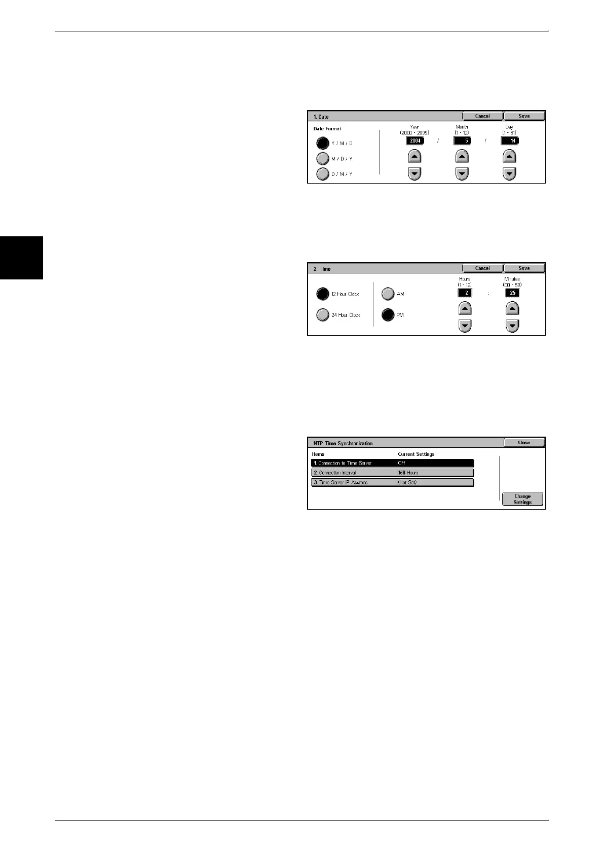 Set the time in the system clock of the machine, using 12-hour or 24-hour