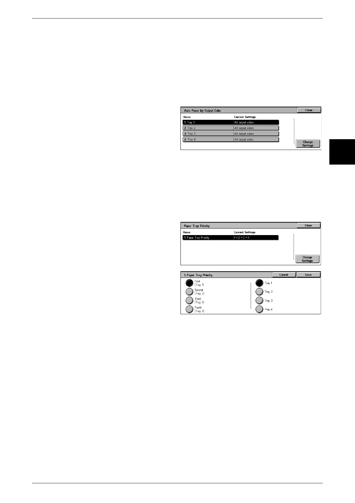 For information about the tray priority sequence, refer to "Paper Tray Priority" (P.261).