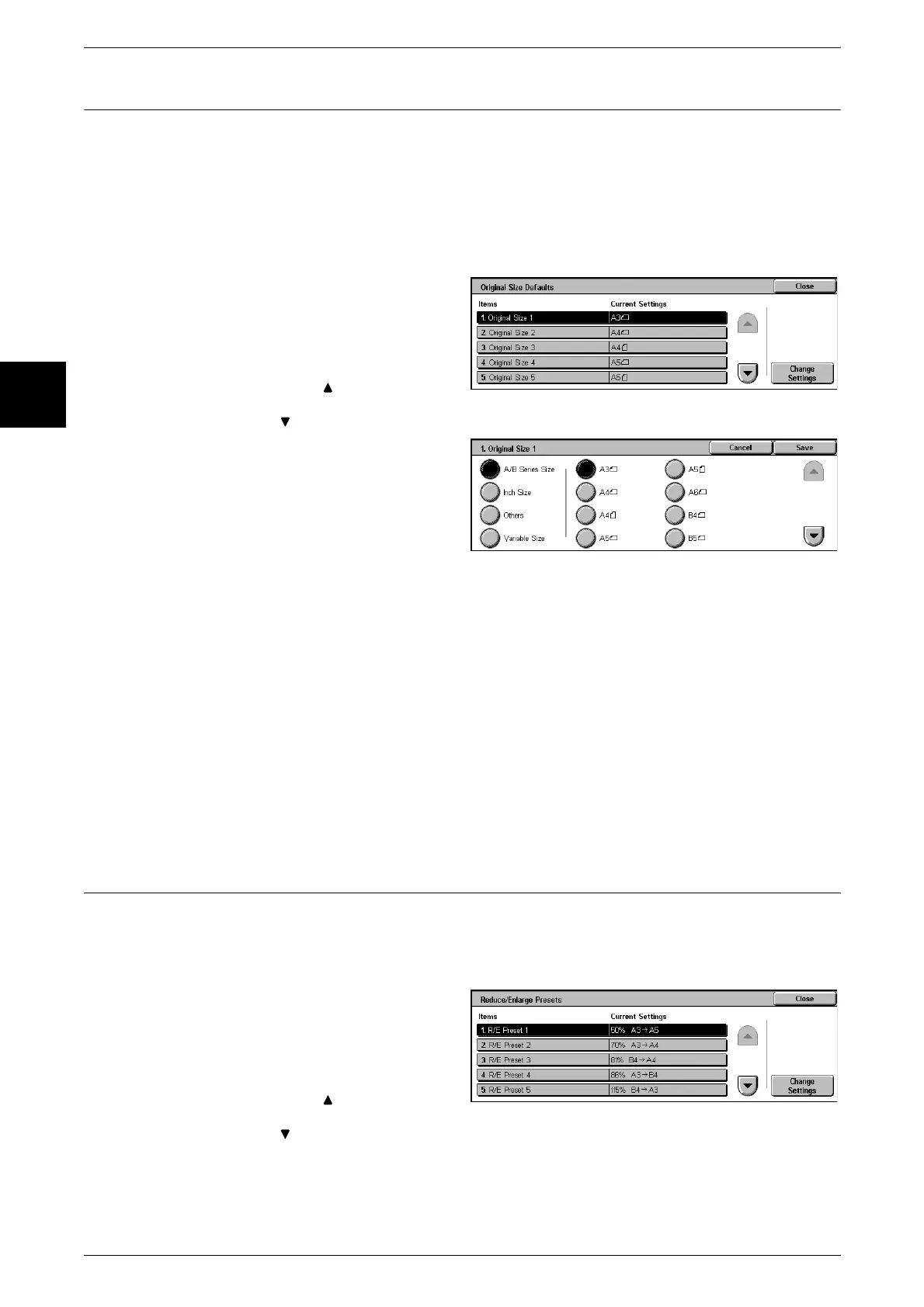 Set the original sizes that appear in [Original Size] in the [Scan Options] screen.