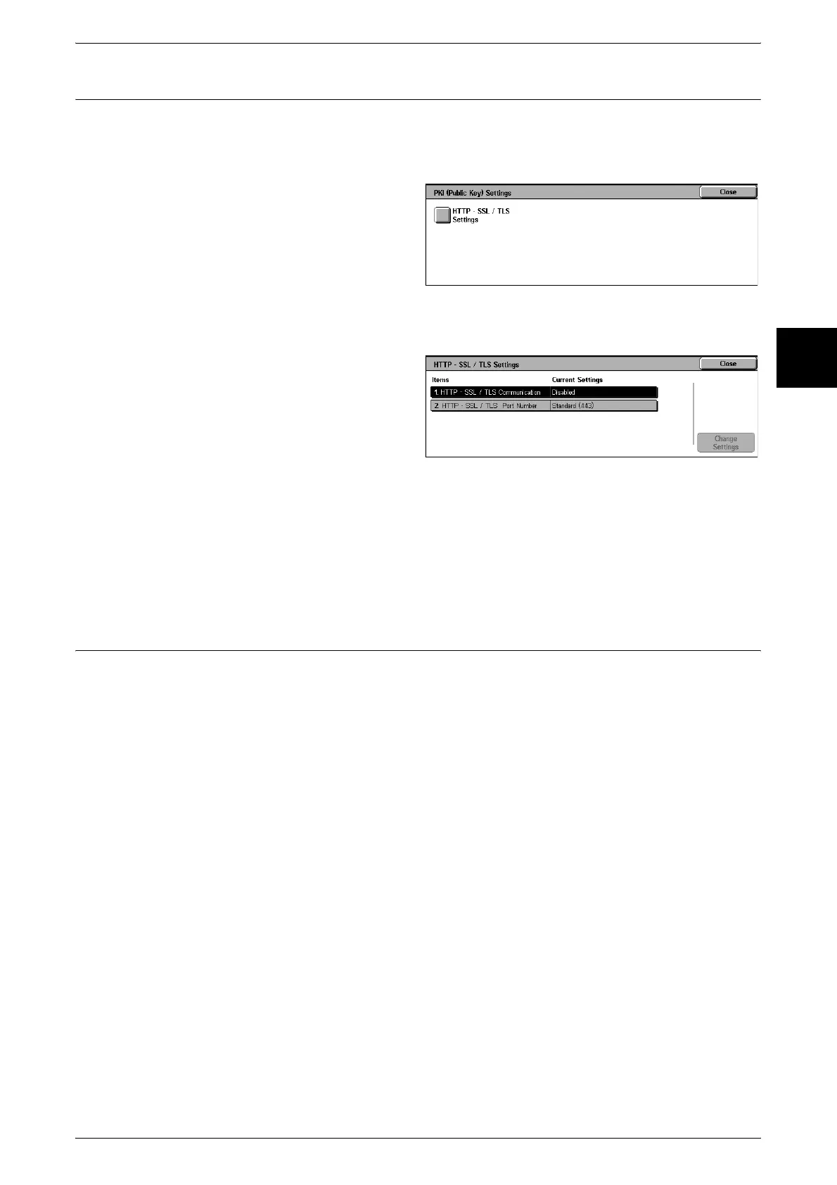 Note • Before setting the HTTP-SSL/TLS communications, the device certificate must be set. For