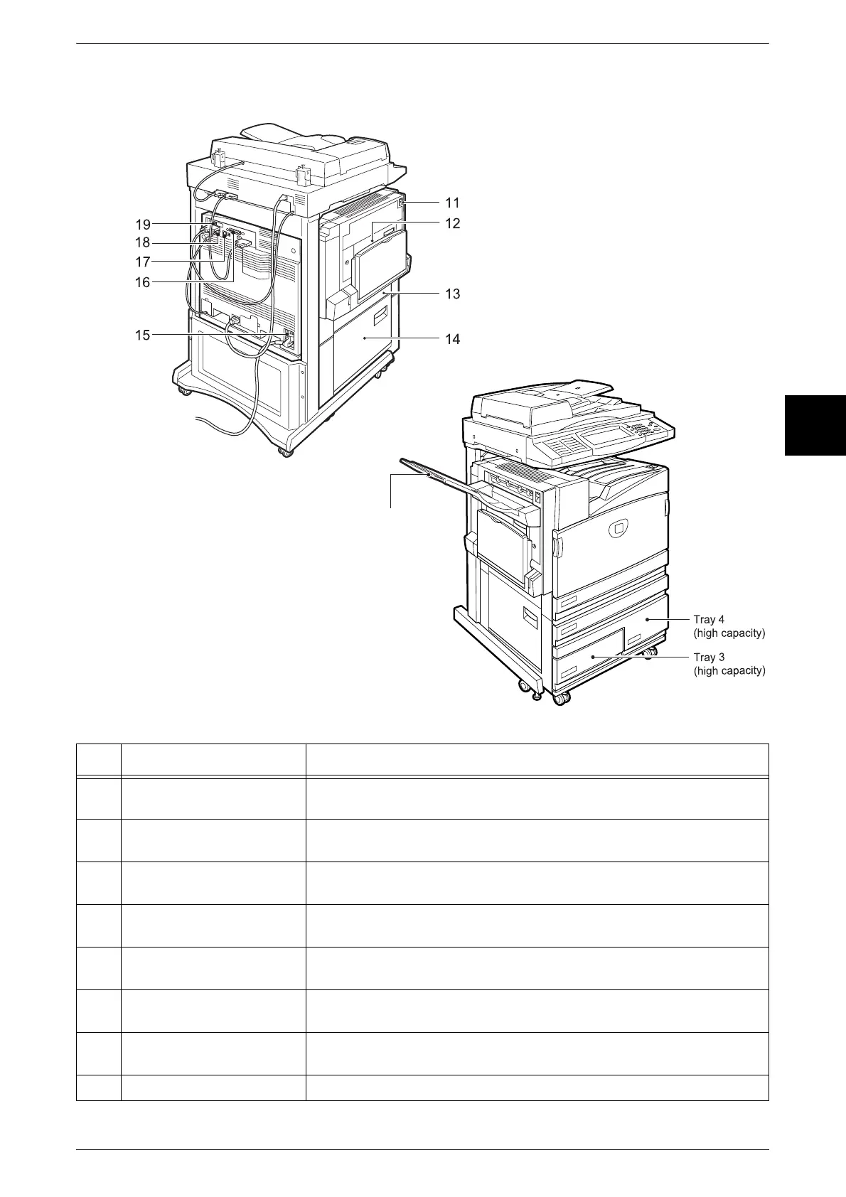 12 Duplex module cover Open this cover to access the insides of the machine to clear paper