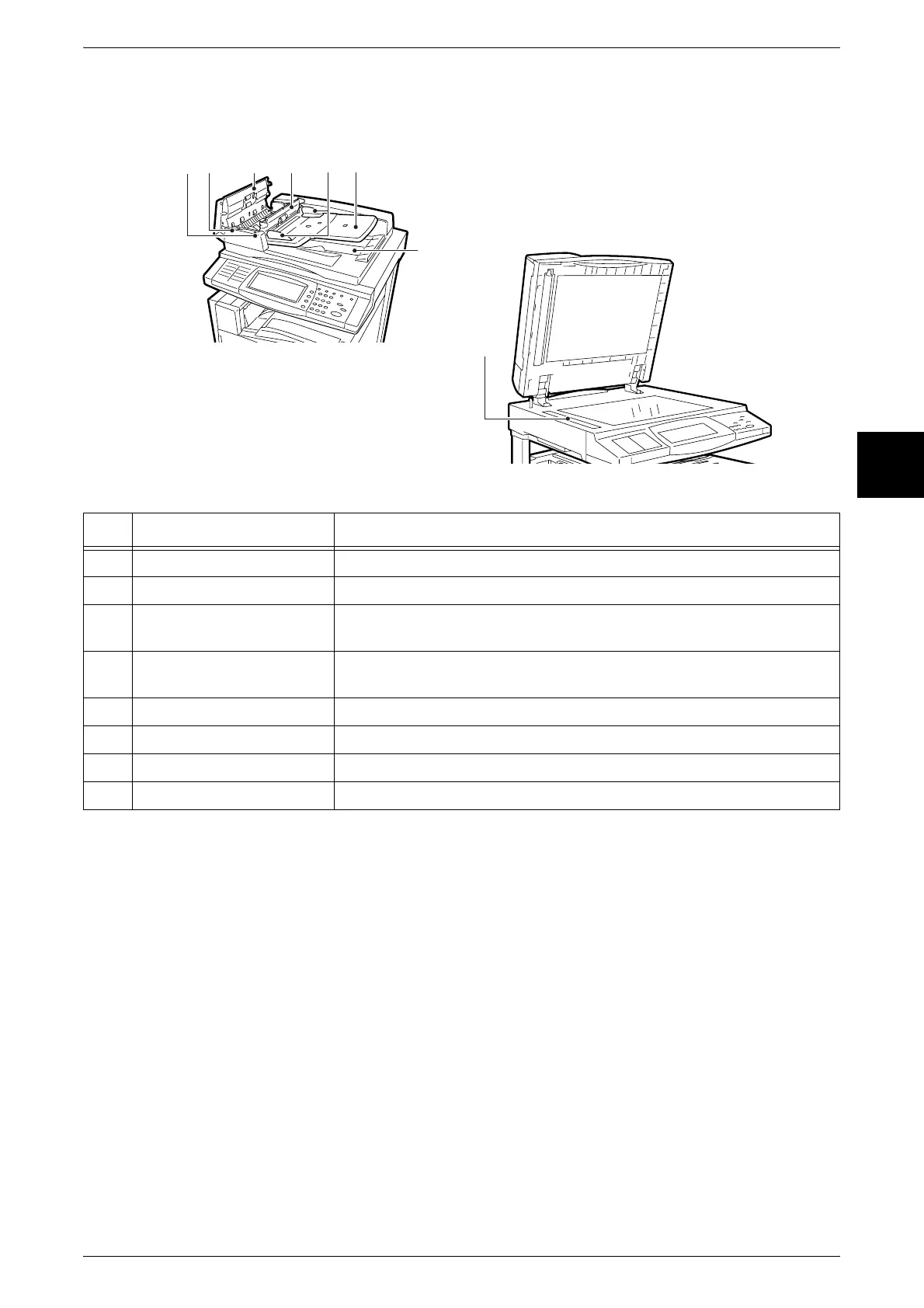 8 Document feeder glass This part scans the document.