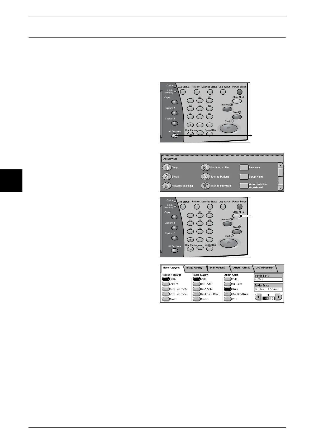 Note • The features displayed depend on the configuration of the machine.