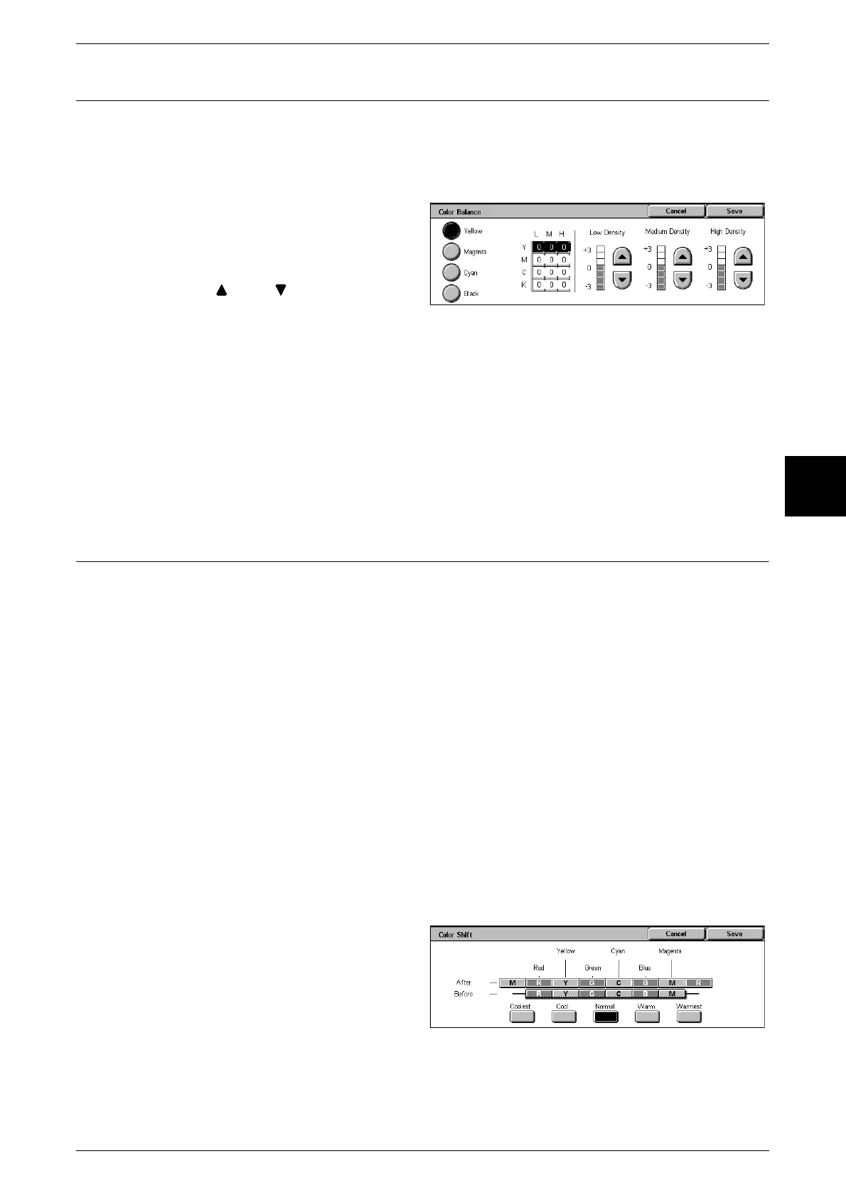upper bar indicates the tone after adjustment. If you press a color shift button, you can