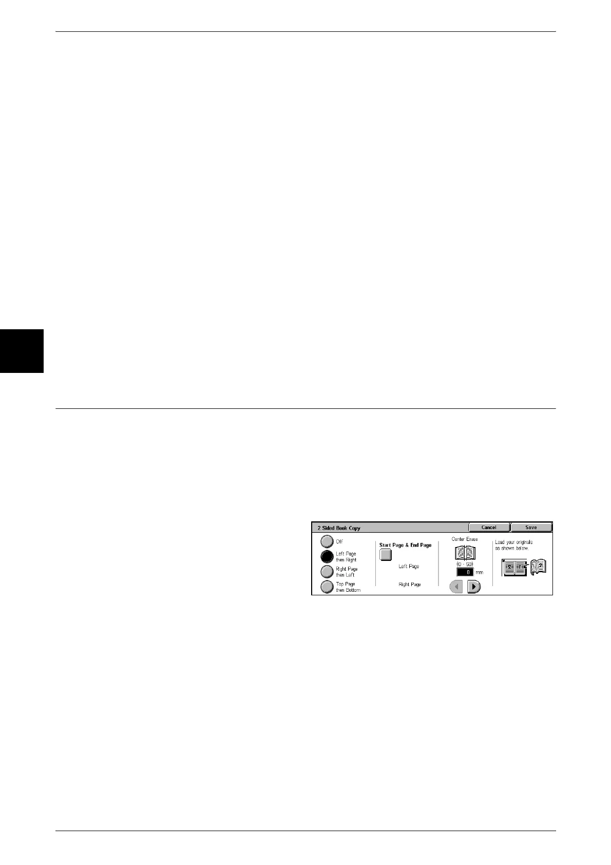 Copies are made of the right page only. You can select this item when [Left Page then